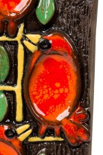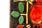 Swedish Mid-Century wall plaque with abstract three red birds on yellow branches relief motifs (NINNIE FORSGREN for, BROMMA KERAMIK).