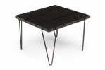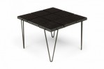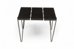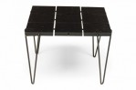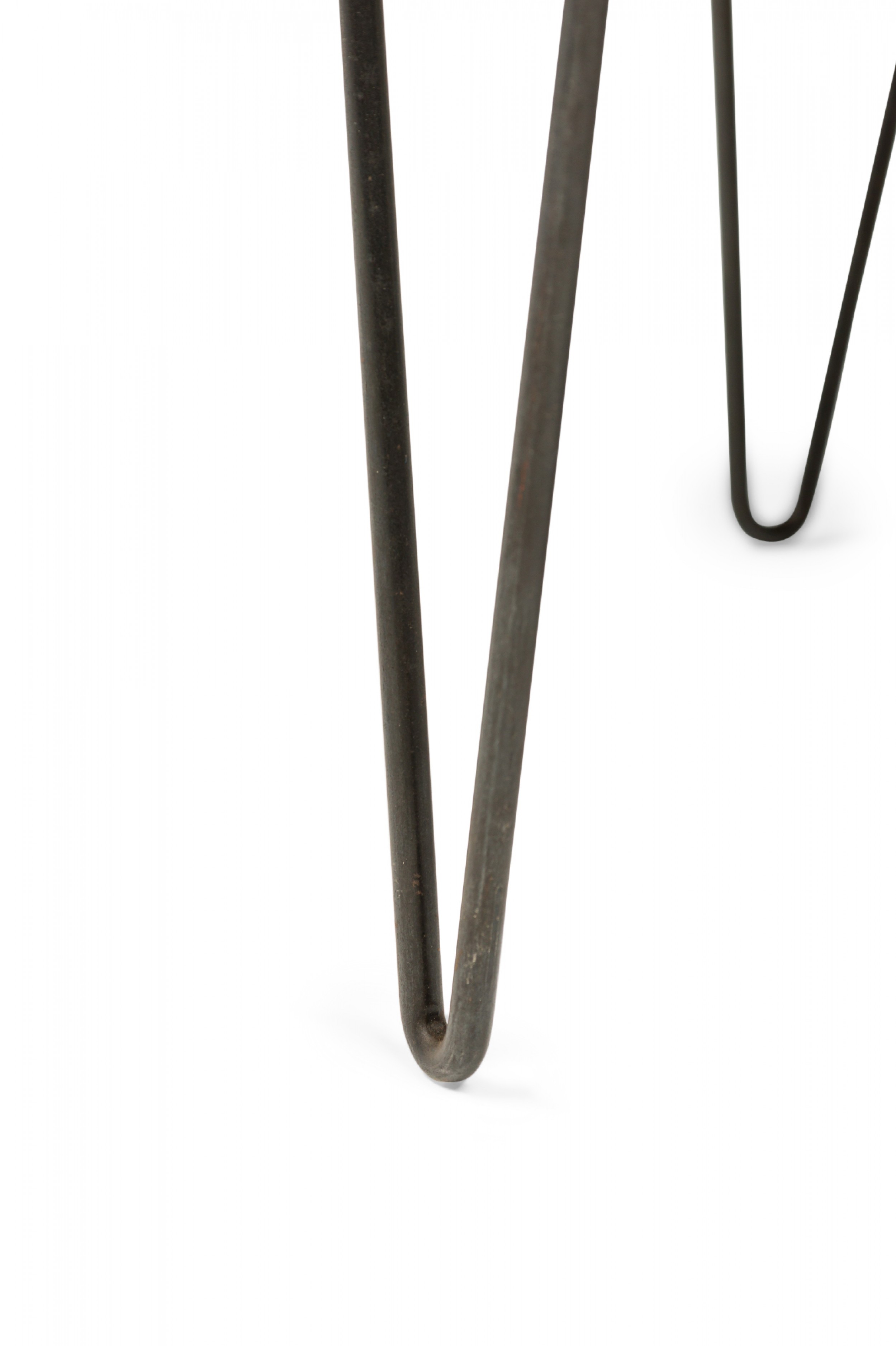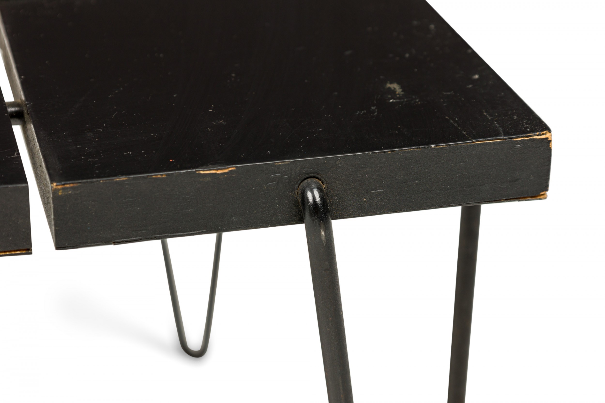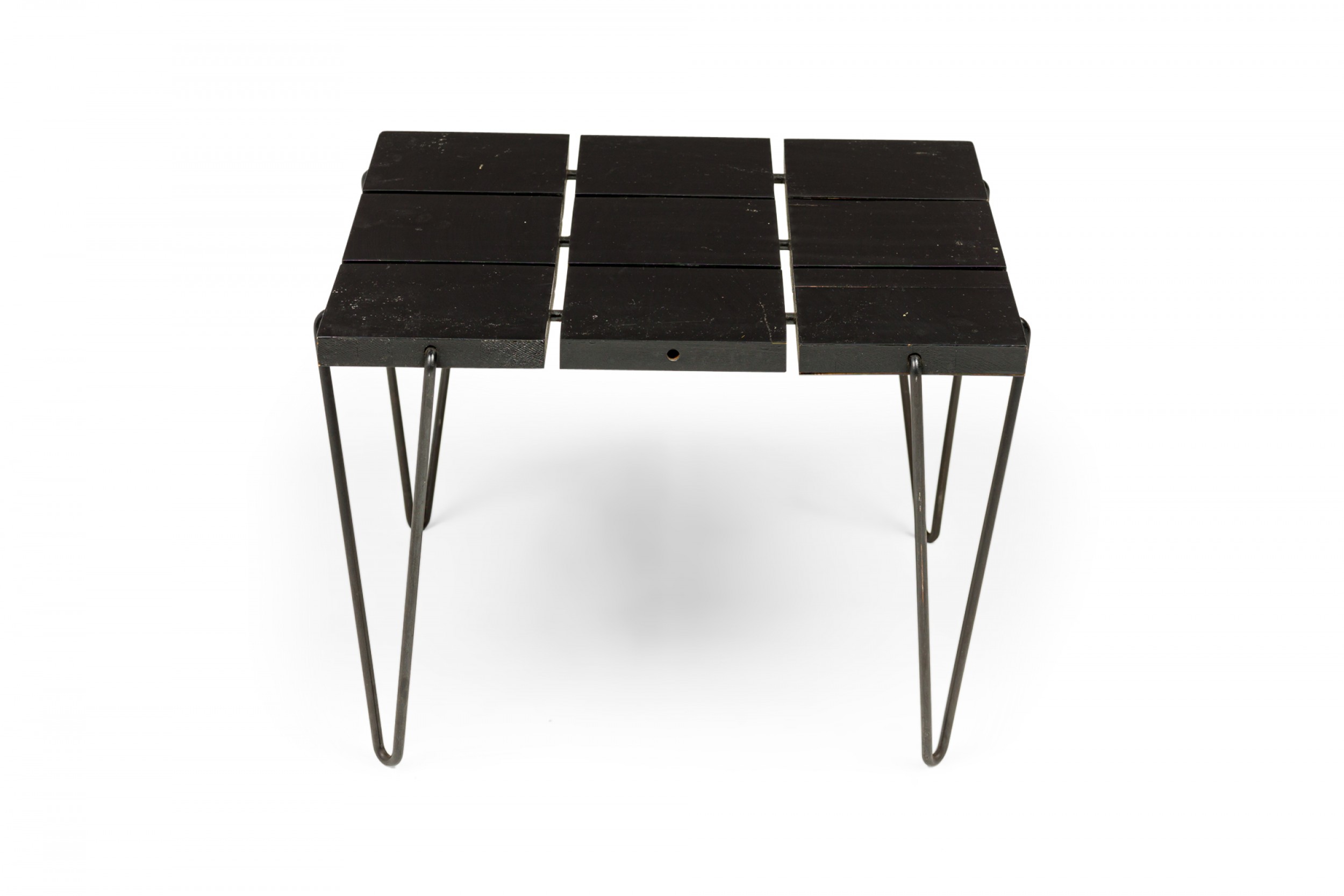 American Mid-Century end / side table with a top comprised of nine ebonized wooden square pieces connected by a flexible wire frame, resting on four black hairpin wire legs. (TONY PAUL)