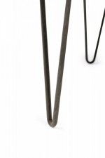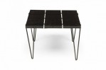 American Mid-Century end / side table with a top comprised of nine ebonized wooden square pieces connected by a flexible wire frame, resting on four black hairpin wire legs. (TONY PAUL).