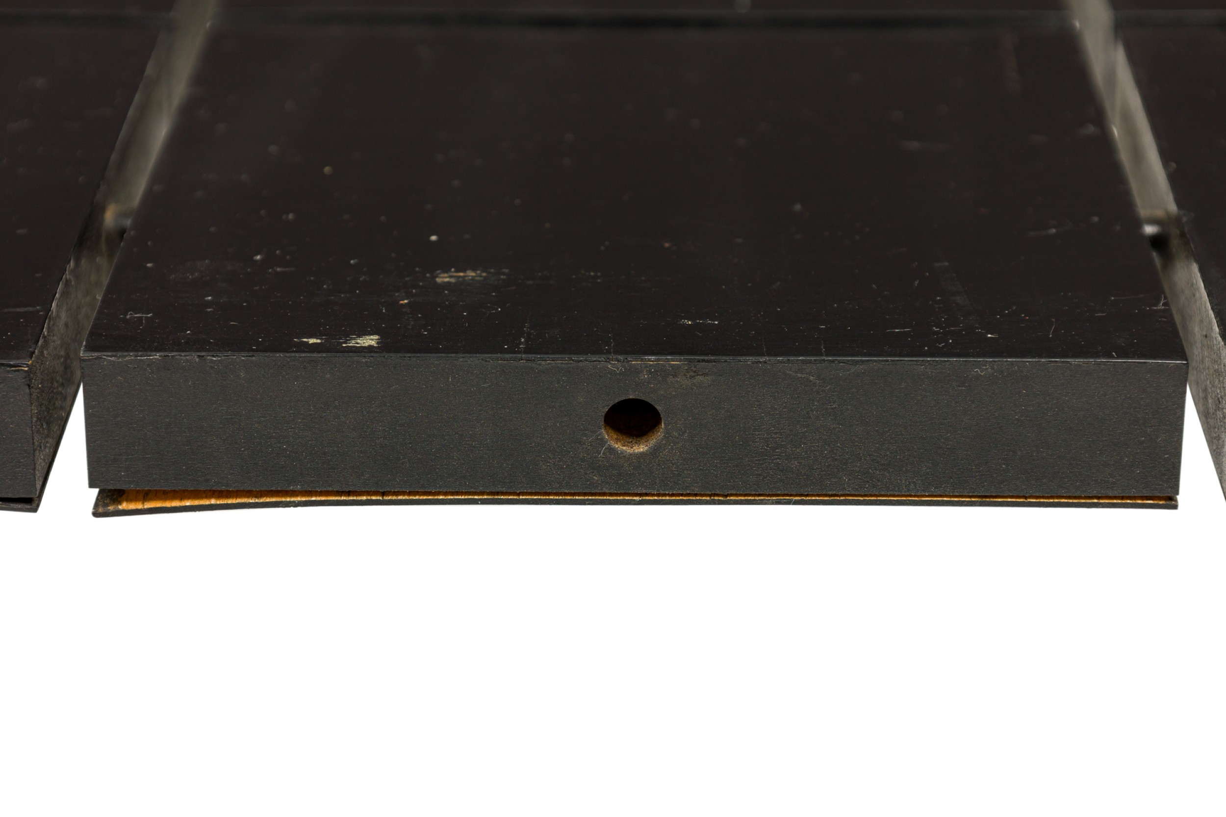 Style: Mid-Century Materials & Techniques: Ebonized, laminate, metal, wood Category: Tables Good; Wear consistent with age and use