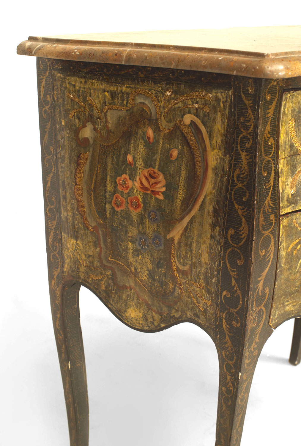 PAIR of Italian Venetian (19/20th Century) floral painted and decorated 2 drawer commodes with shaped marble top (PRICED AS PAIR).