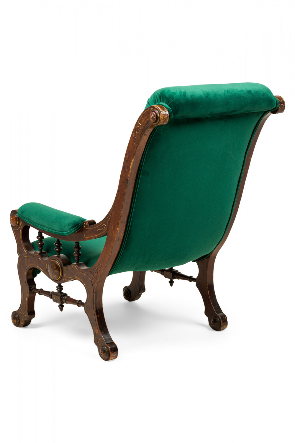 Hostatter American Victorian Eastlake Upholstered Walnut Sleigh Back Armchair