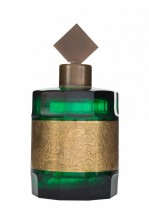 Vintage Green Glass and Gilt Metal Perfume Bottle