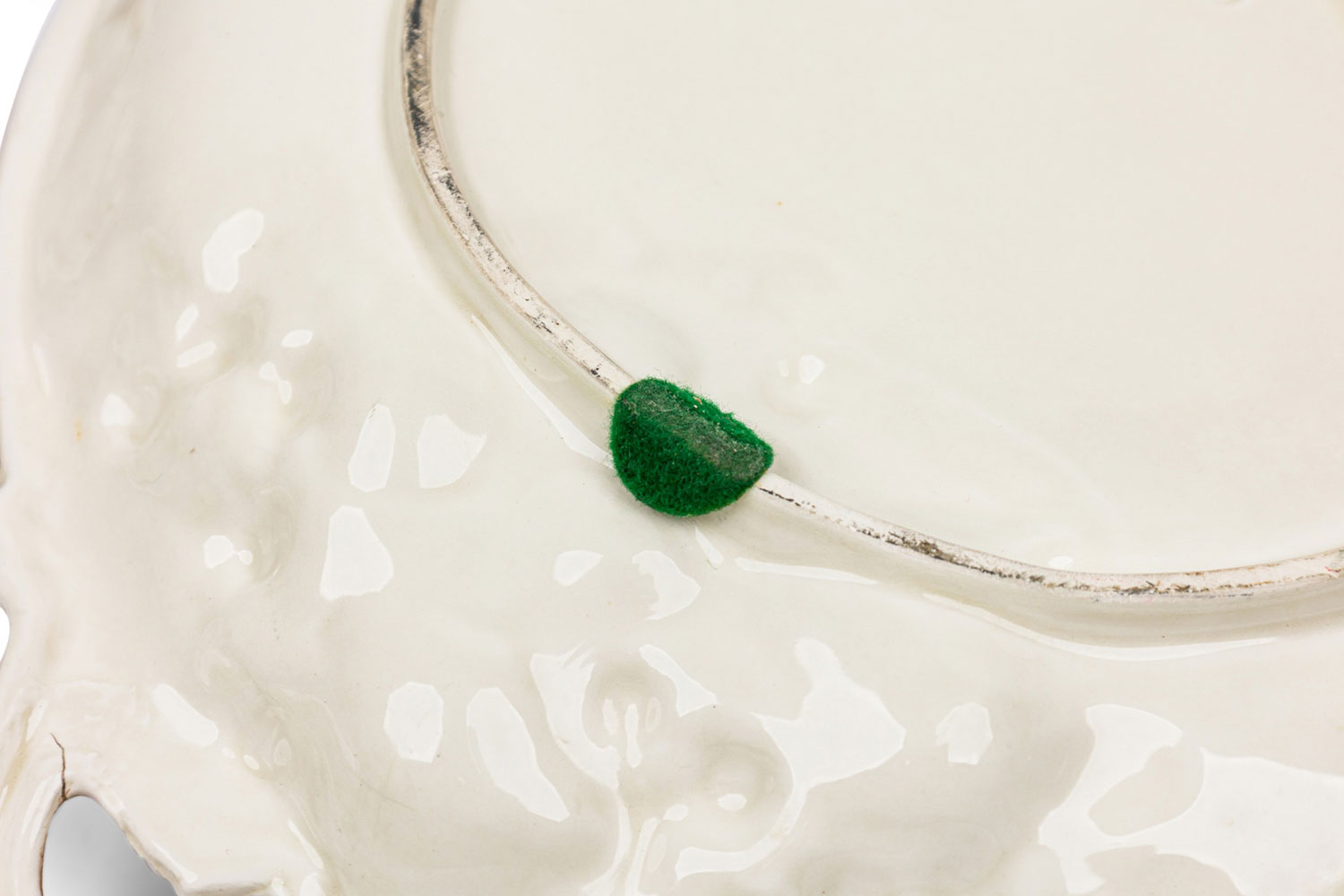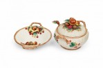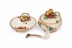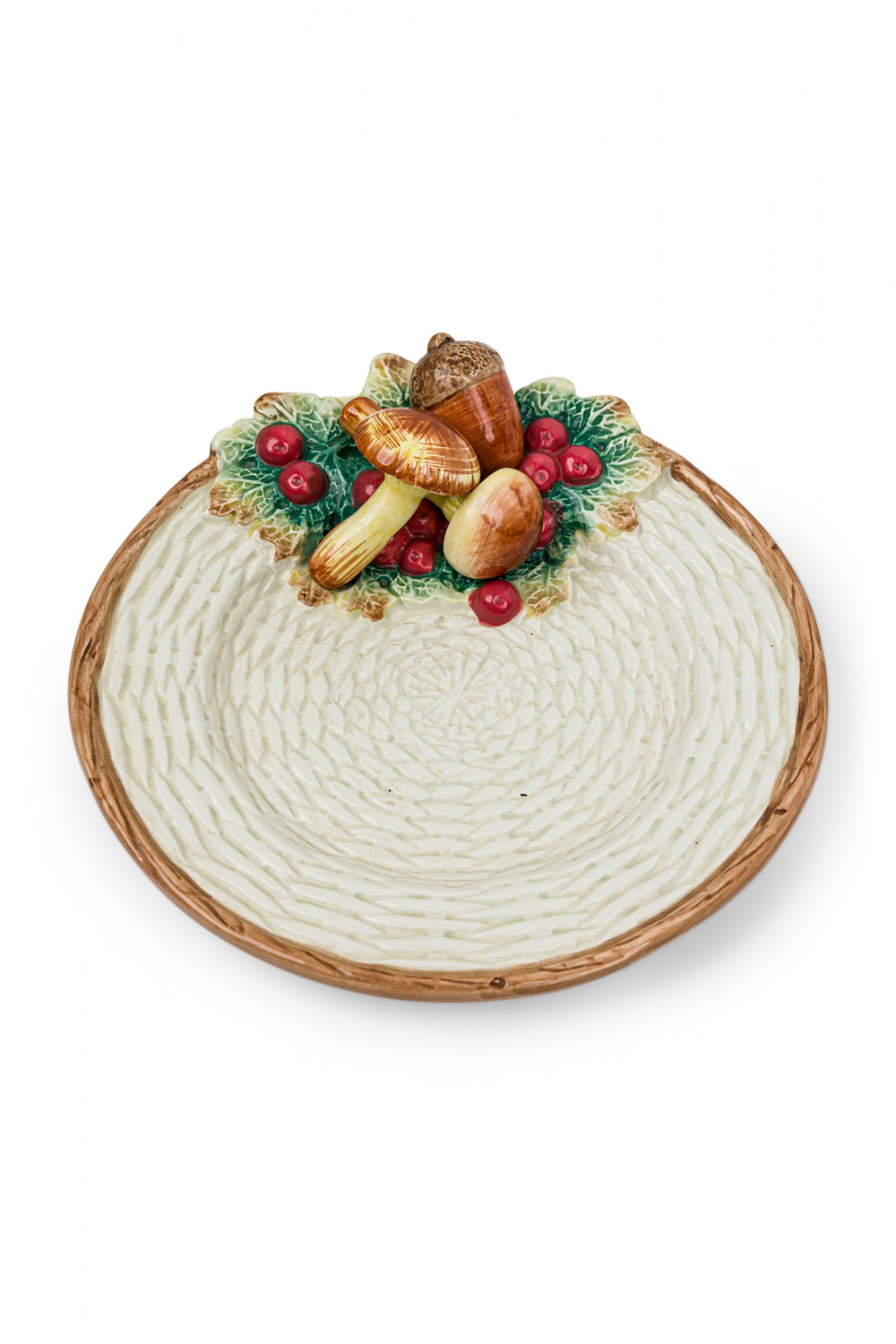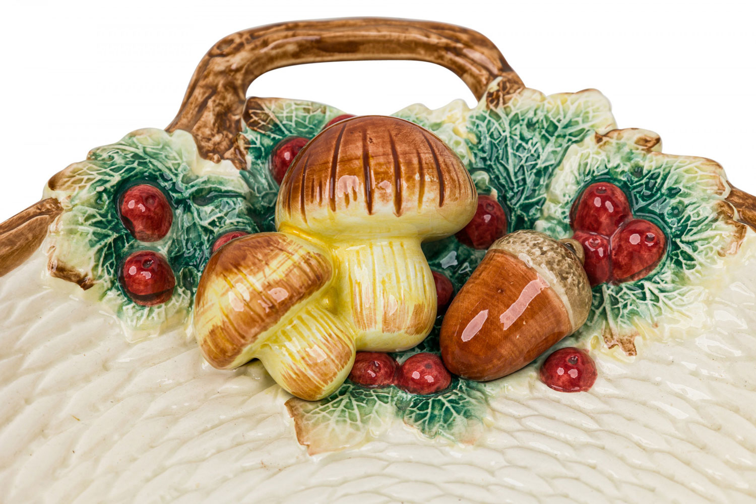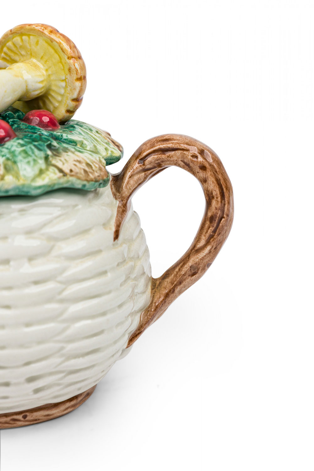 Style: Mid-Century Materials & Techniques: Ceramic, painted Category: Dining Room Condition: A few chips. Mushroom on small oblong dish has been broken and repaired. Good; Minor losses