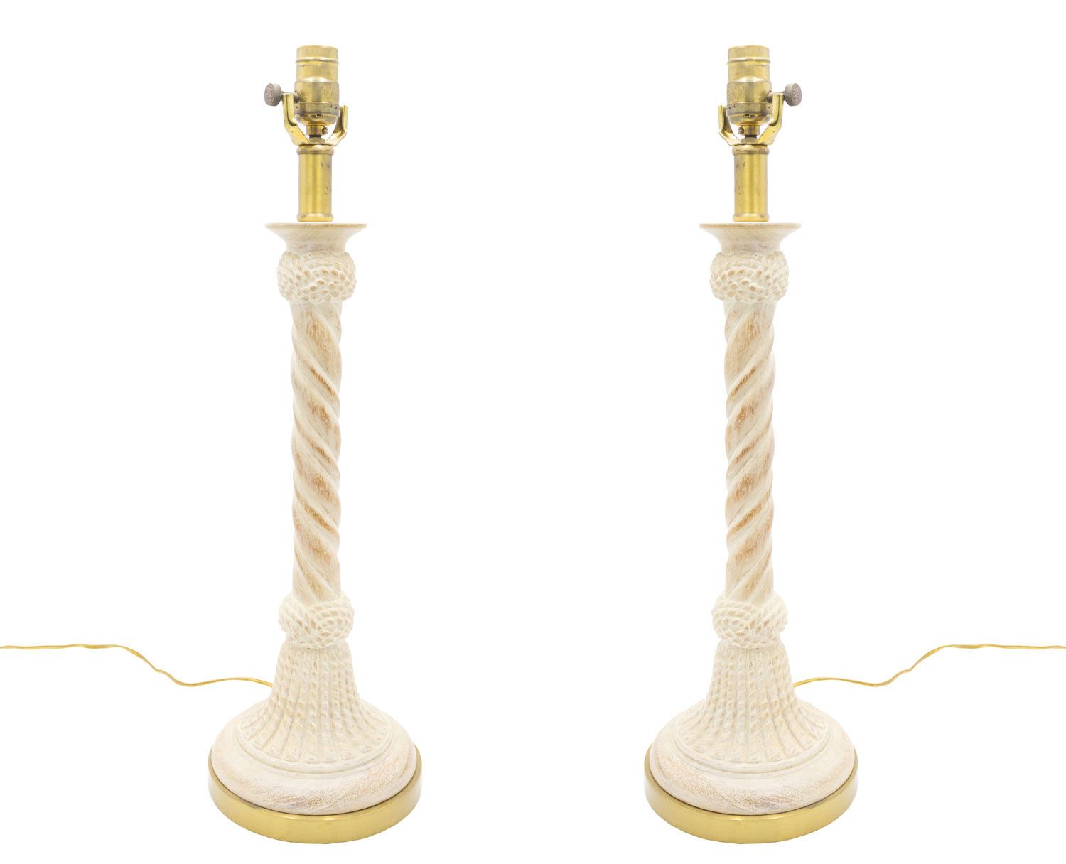 Pair of Maitland Smith Bleached Wood Spiral Table Lamps