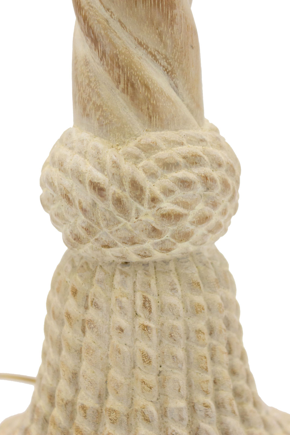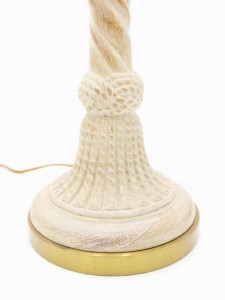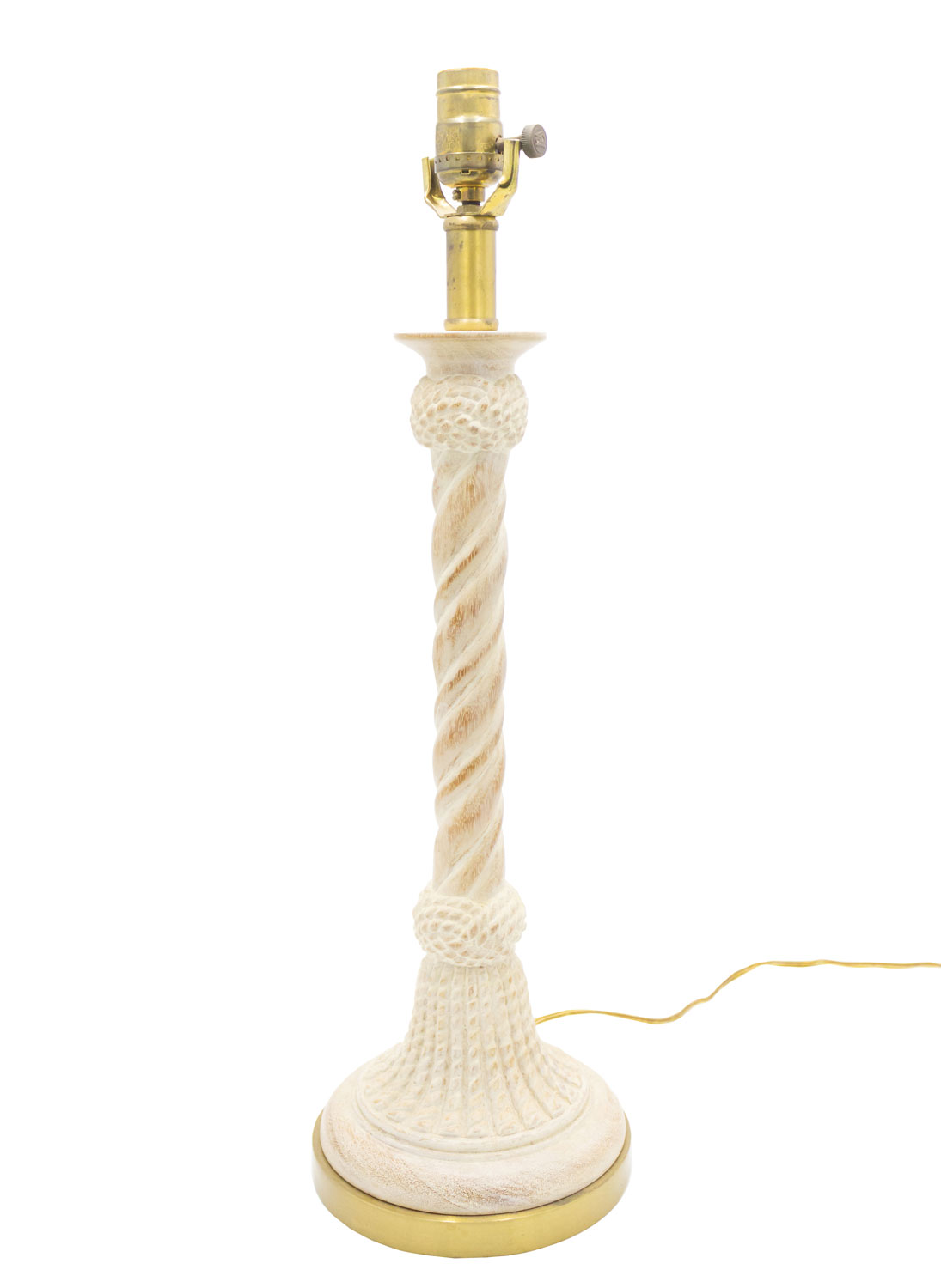 PAIR of Mid-Century bleached wood swirl column form table lamps with rope design trim (by MAITLAND SMITH. Original label attached) (PRICED AS PAIR)..