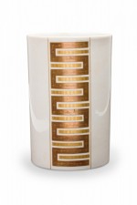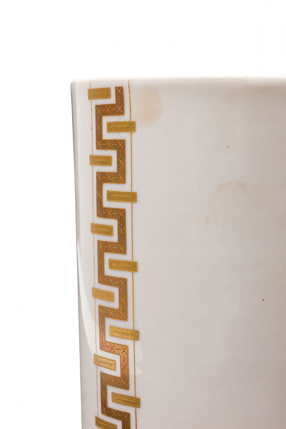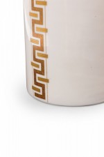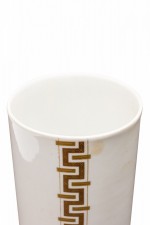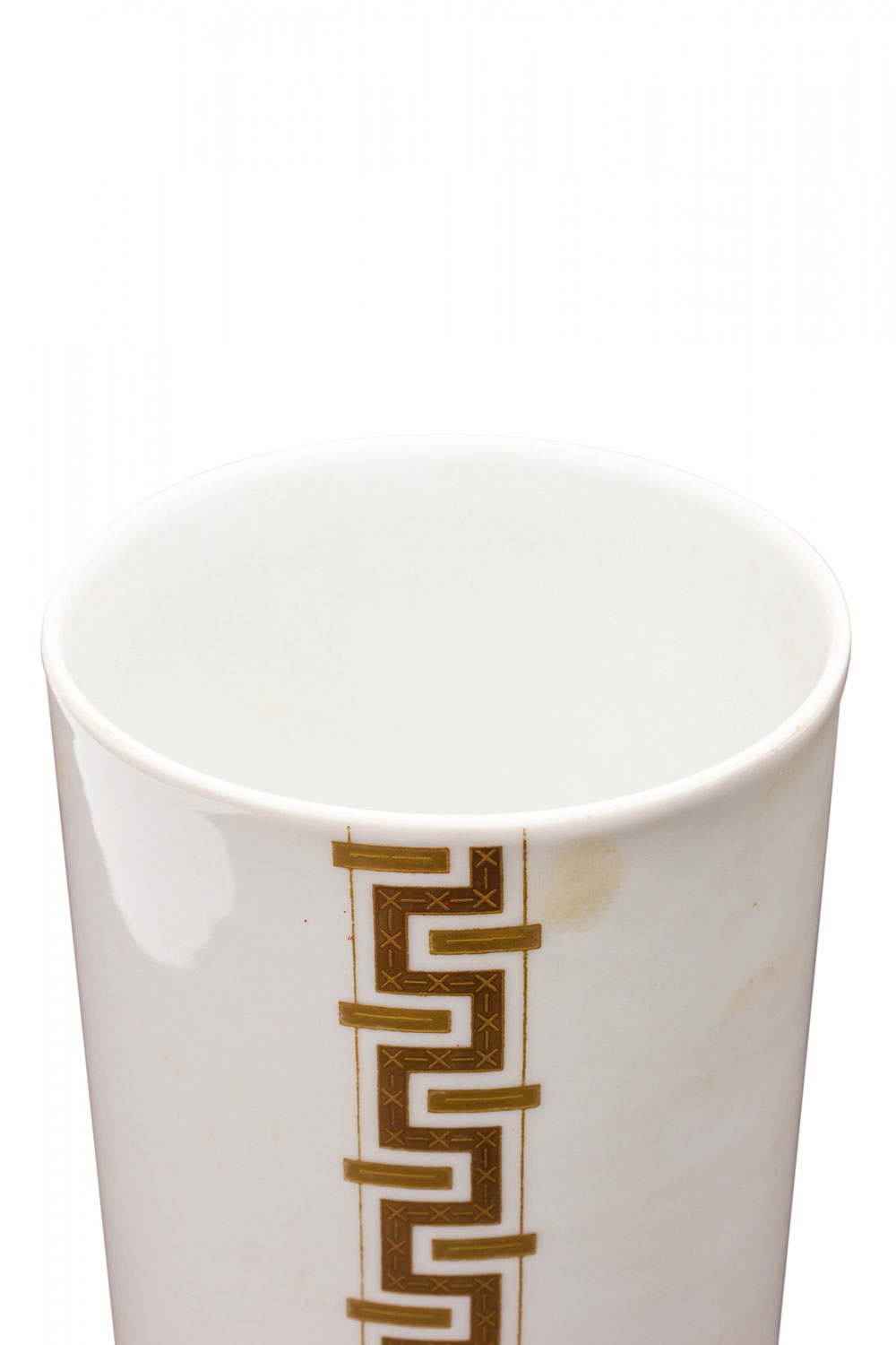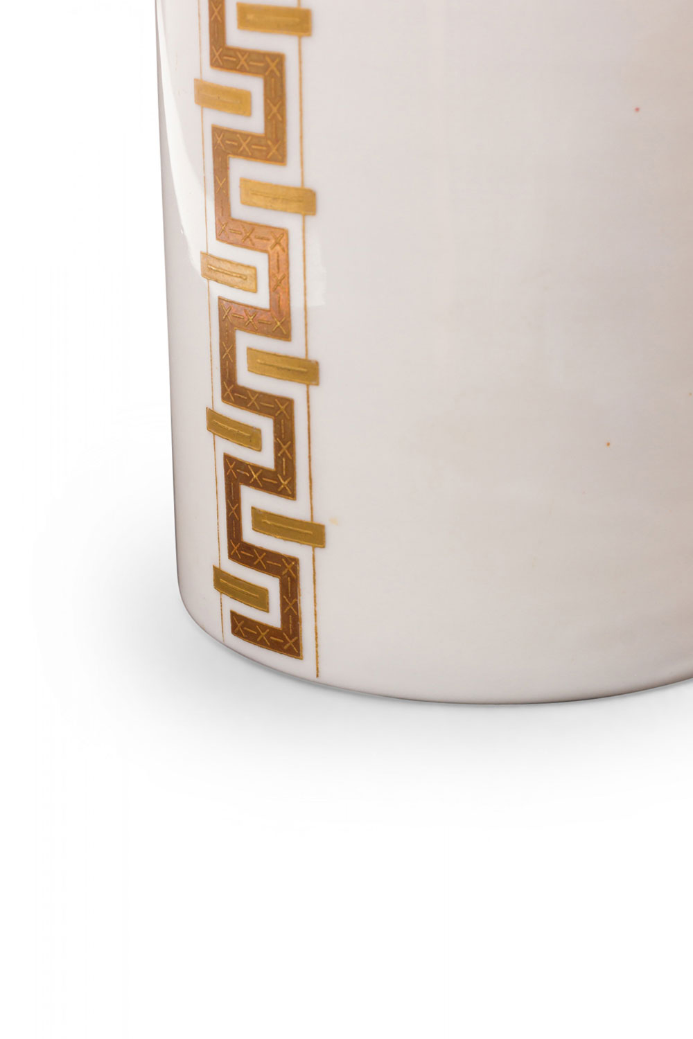 Alka Kunst Bavarian German Mid-Century Cylindrical Gilt Geometric Stripe White Porcelain Vase