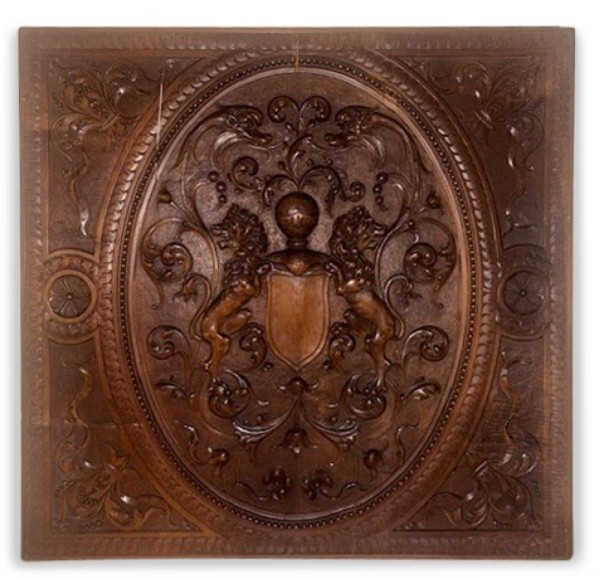 Style: Rustic Materials & Techniques: Bone, carved, wood Category: Cleared Art Condition: Some small chips to the plaque