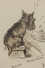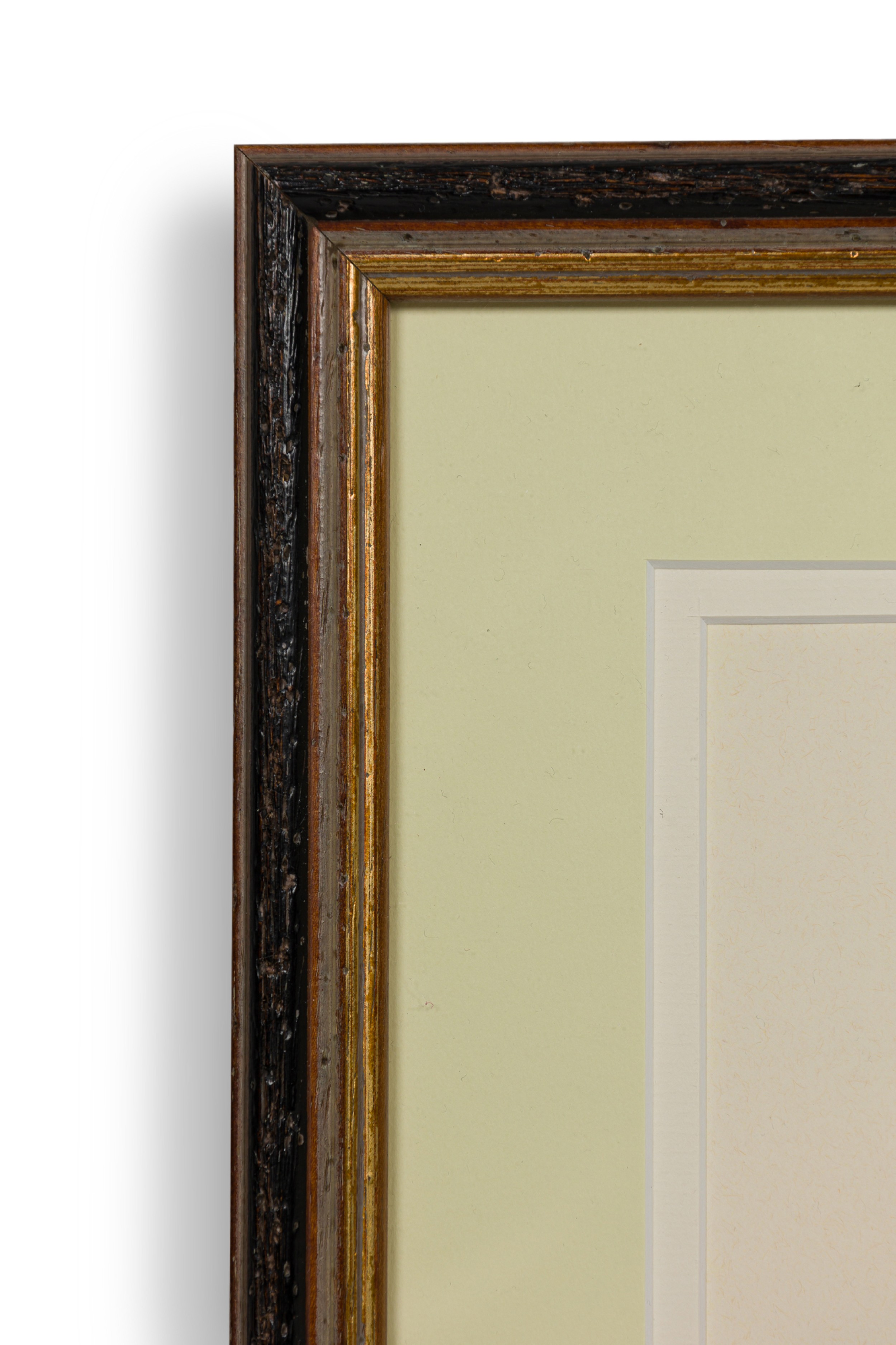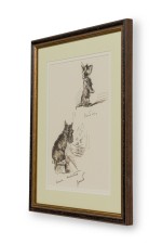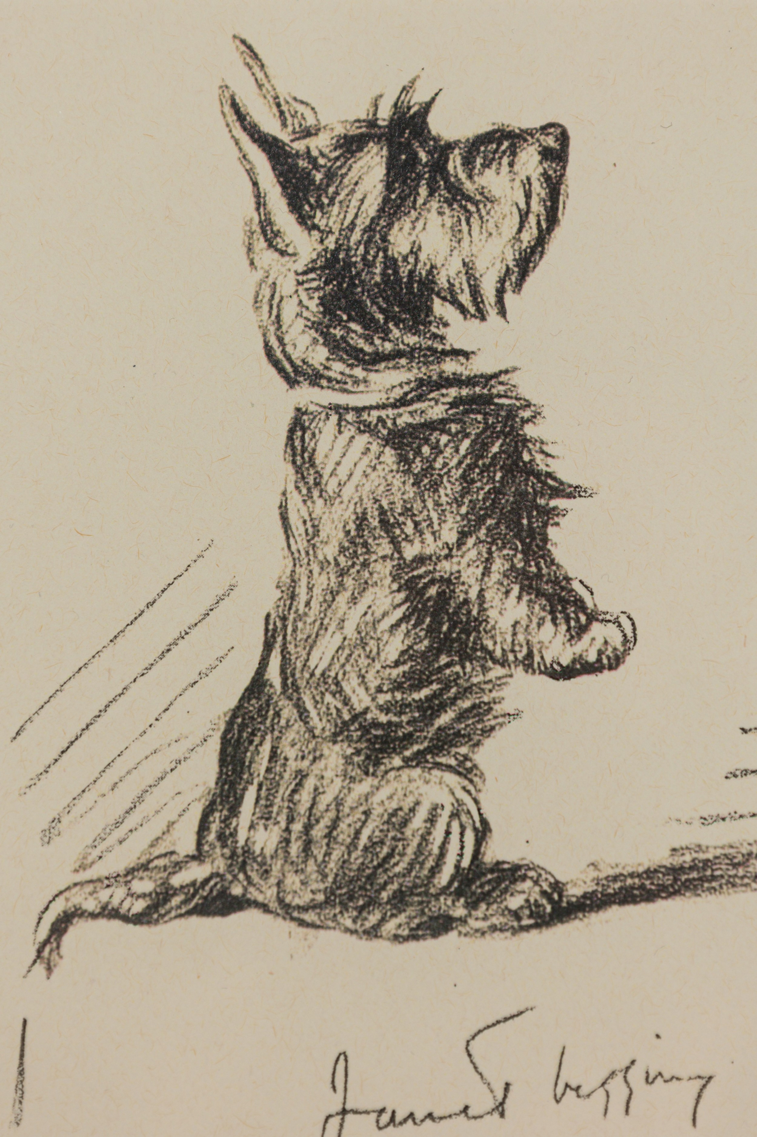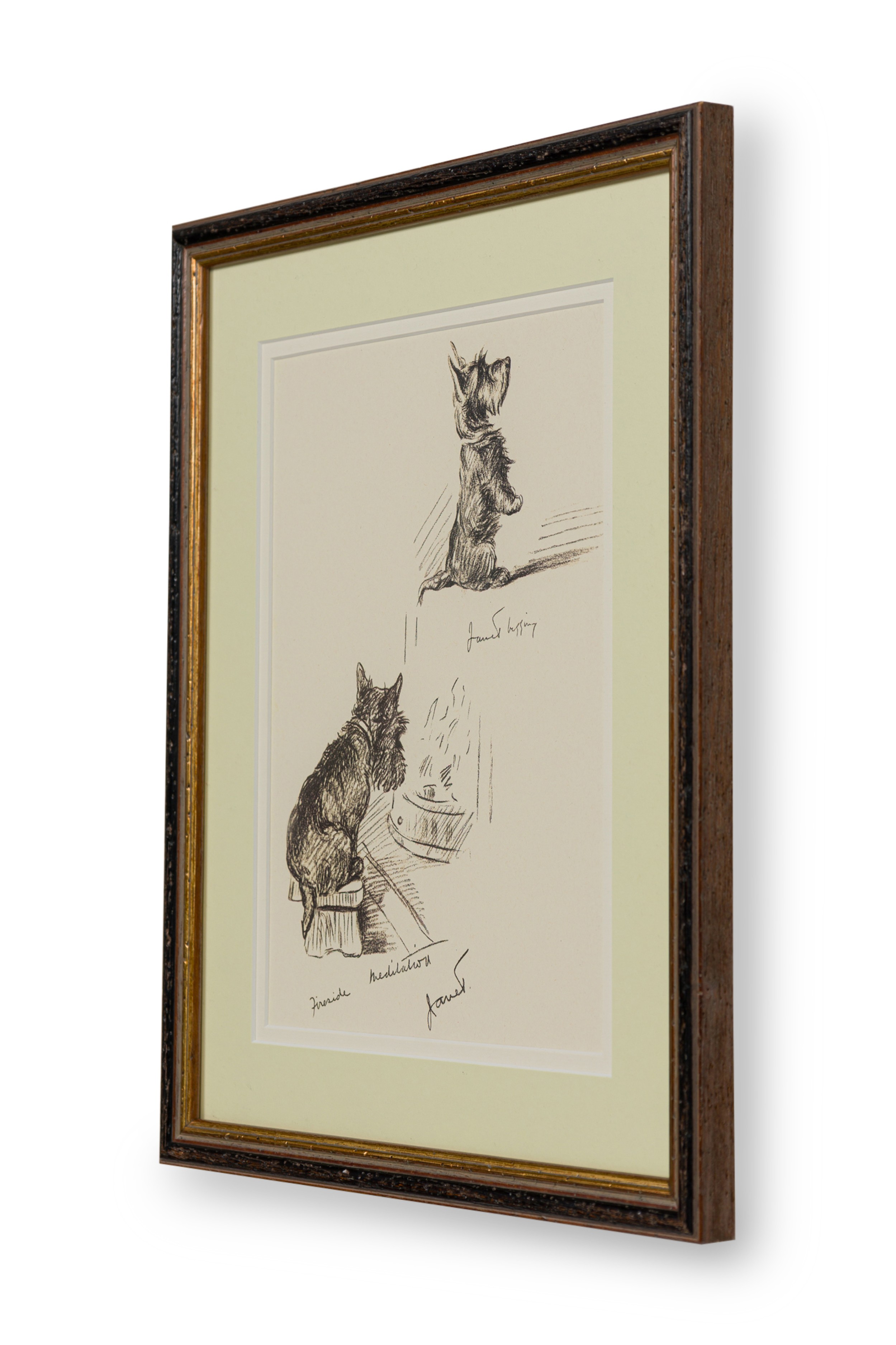 American Mid-Century print of a pencil sketch of a Scottish-Terrier in a wooden black and gilt frame (similar to NWL6150A).