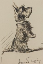American Mid-Century print of a pencil sketch of a Scottish-Terrier in a wooden black and gilt frame (similar to NWL6150A)