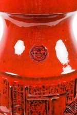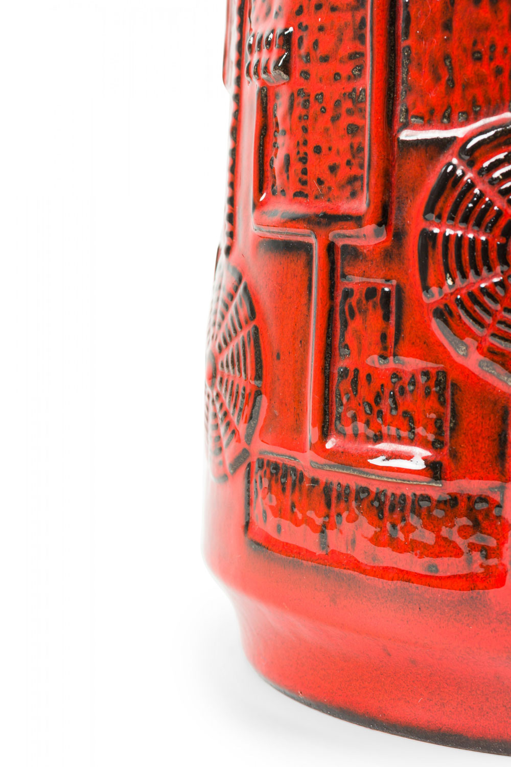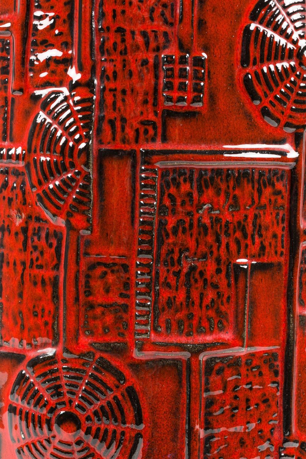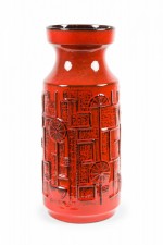 Bay Keramik West German Mid-Century Deep Red and Black Raised Geometric Patterned Ceramic Vase