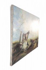 Style: English Materials & Techniques: Canvas Category: Cleared Art Condition: Canvas slightly loose on frame, some imperfections and damages to paint surface.