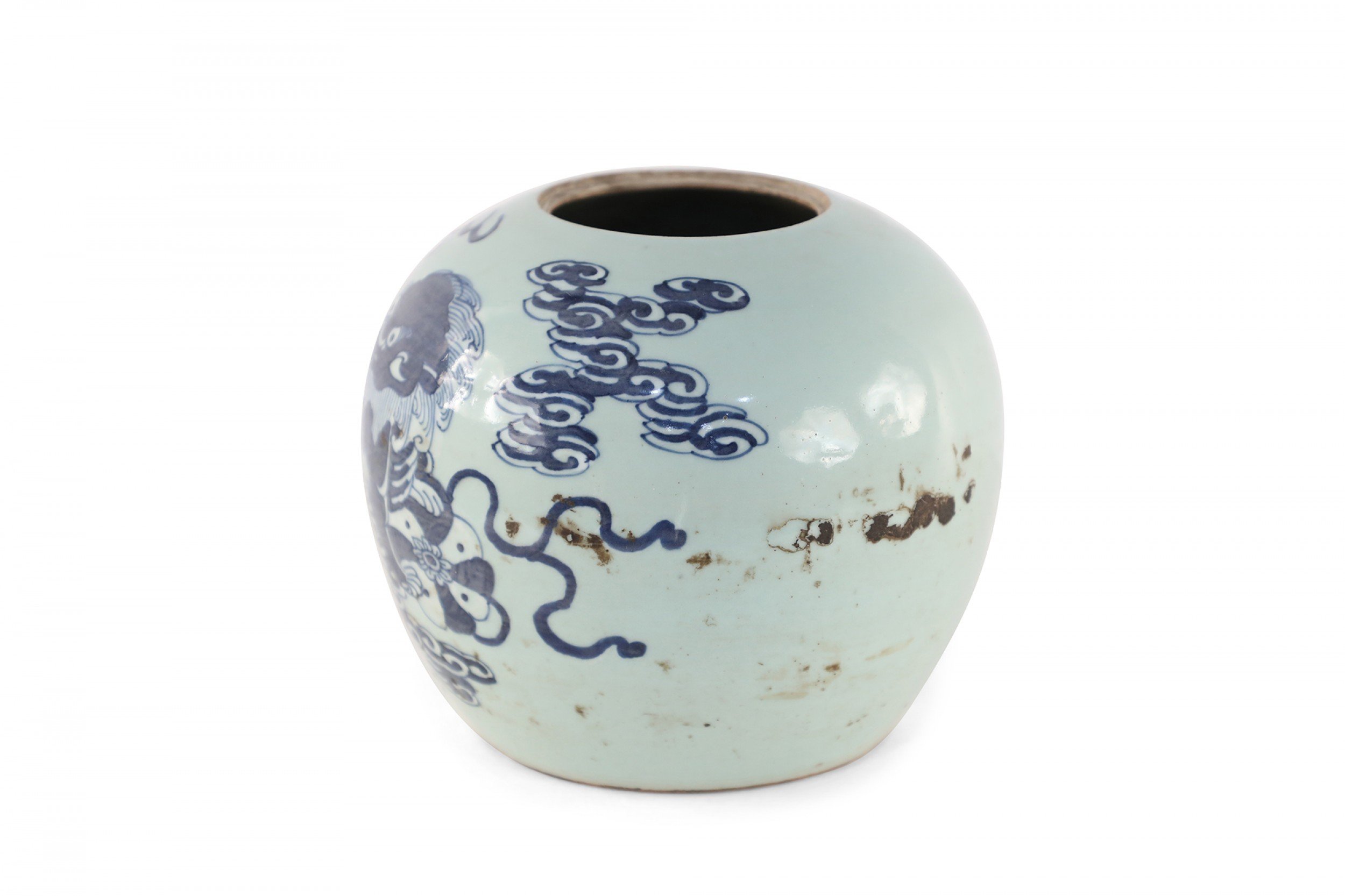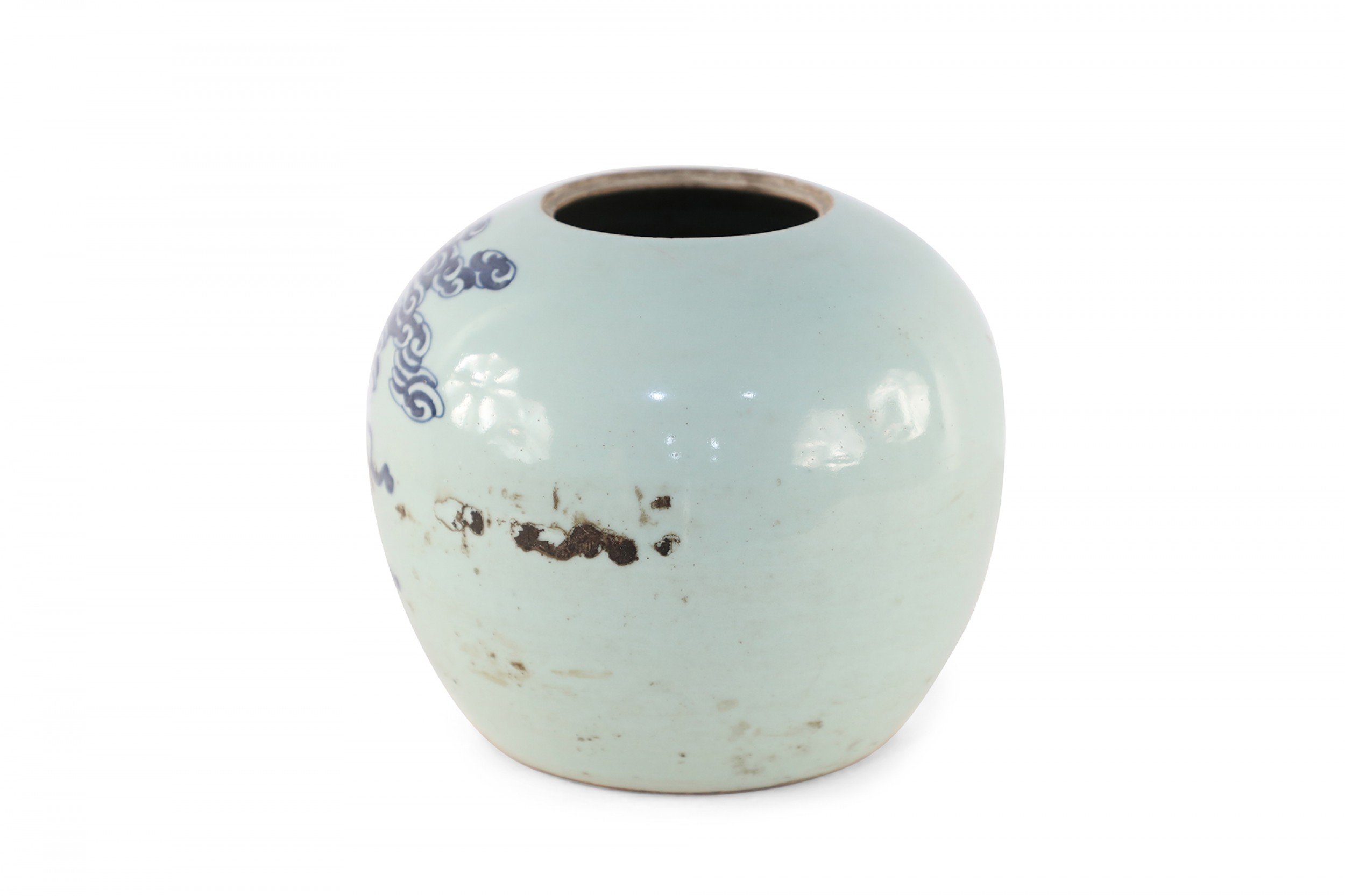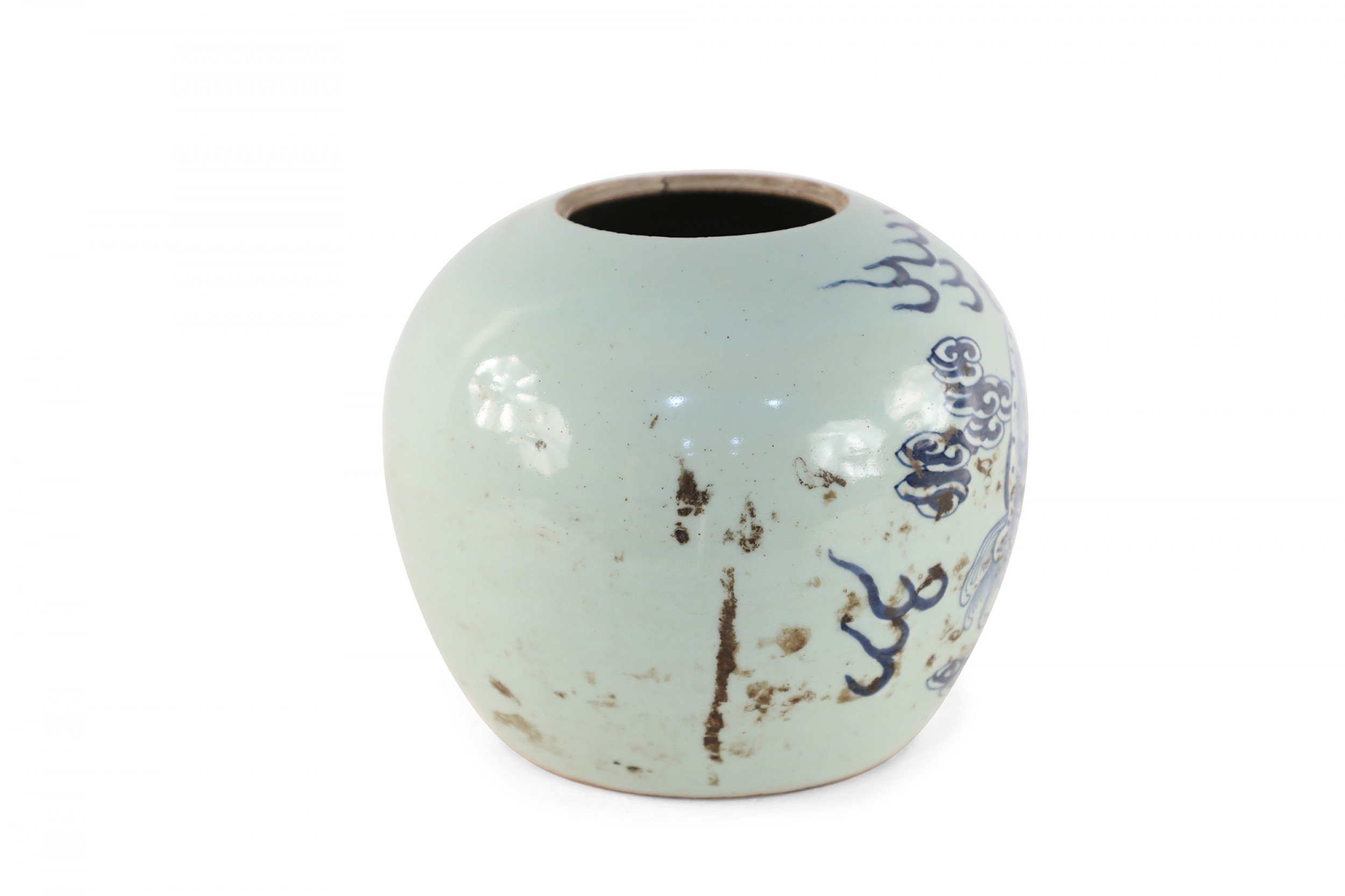 Chinese celadon porcelain vase painted with a blue dragon amid the clouds and made with a small mouth opening..