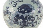 Chinese Celadon and Blue Dragon Motif Porcelain Vase