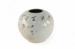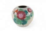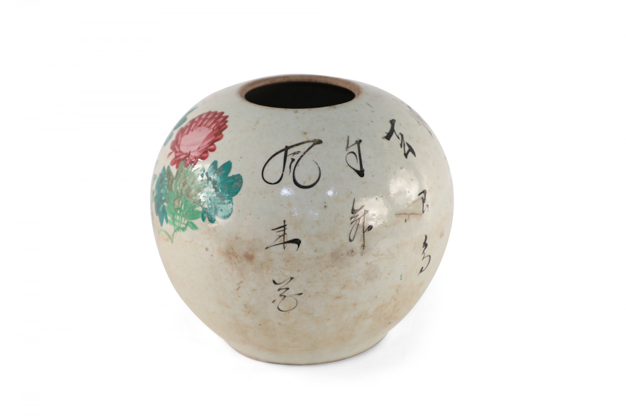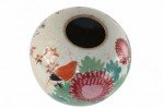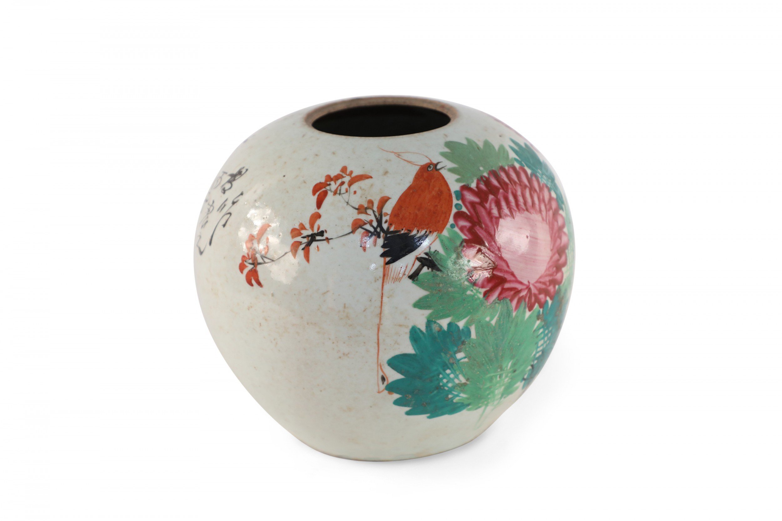 Chinese Cream Floral and Bird Motif Round Porcelain Vase