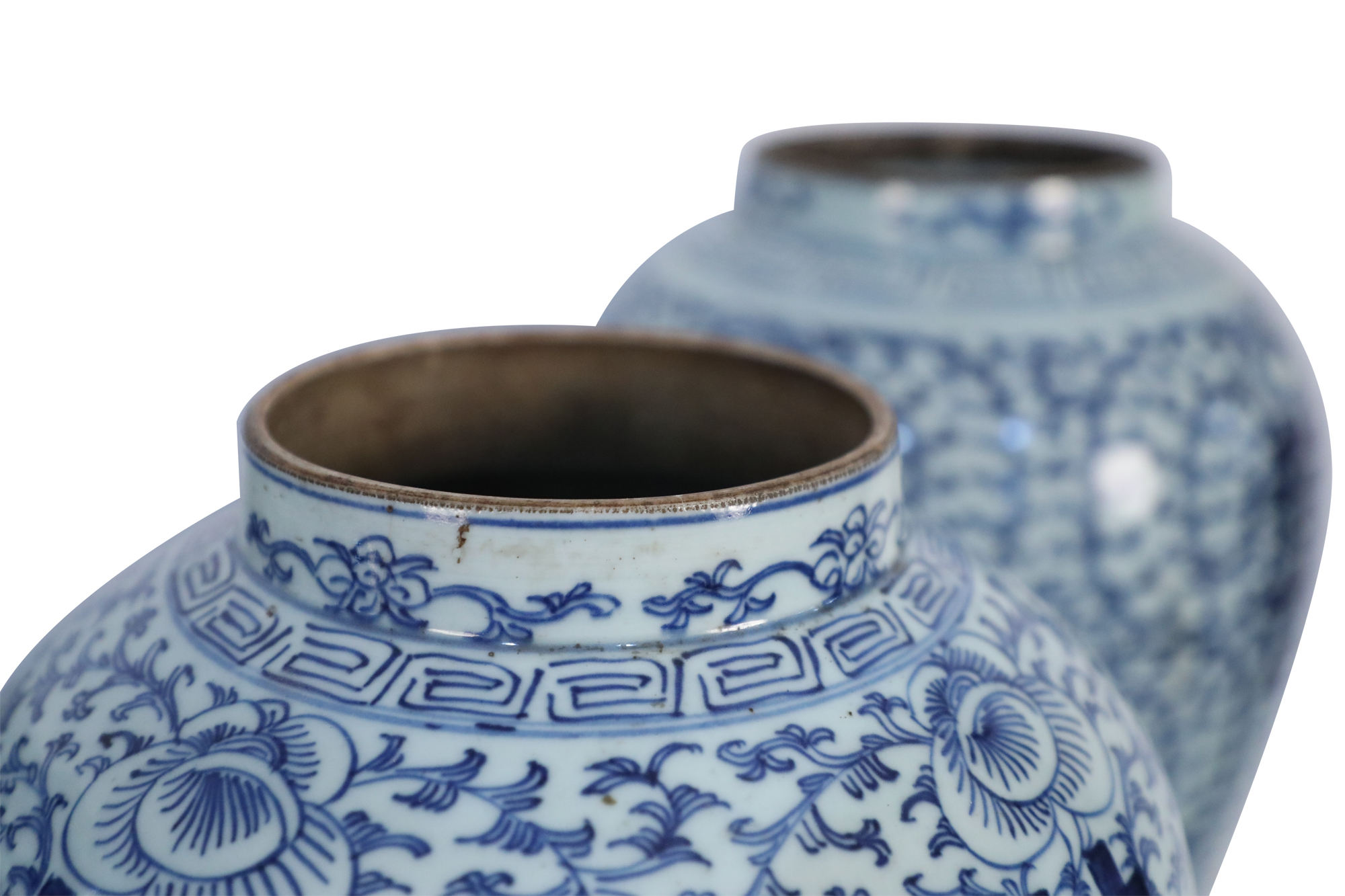 Chinese Off-White and Light Blue Vine Pattern Lidded Porcelain Ginger Jars