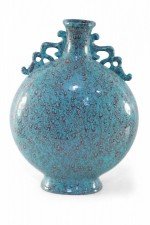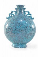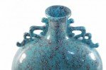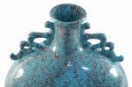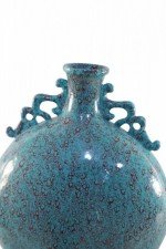 Chinese Teal and Red Crackle Porcelain Moon Flask Vase