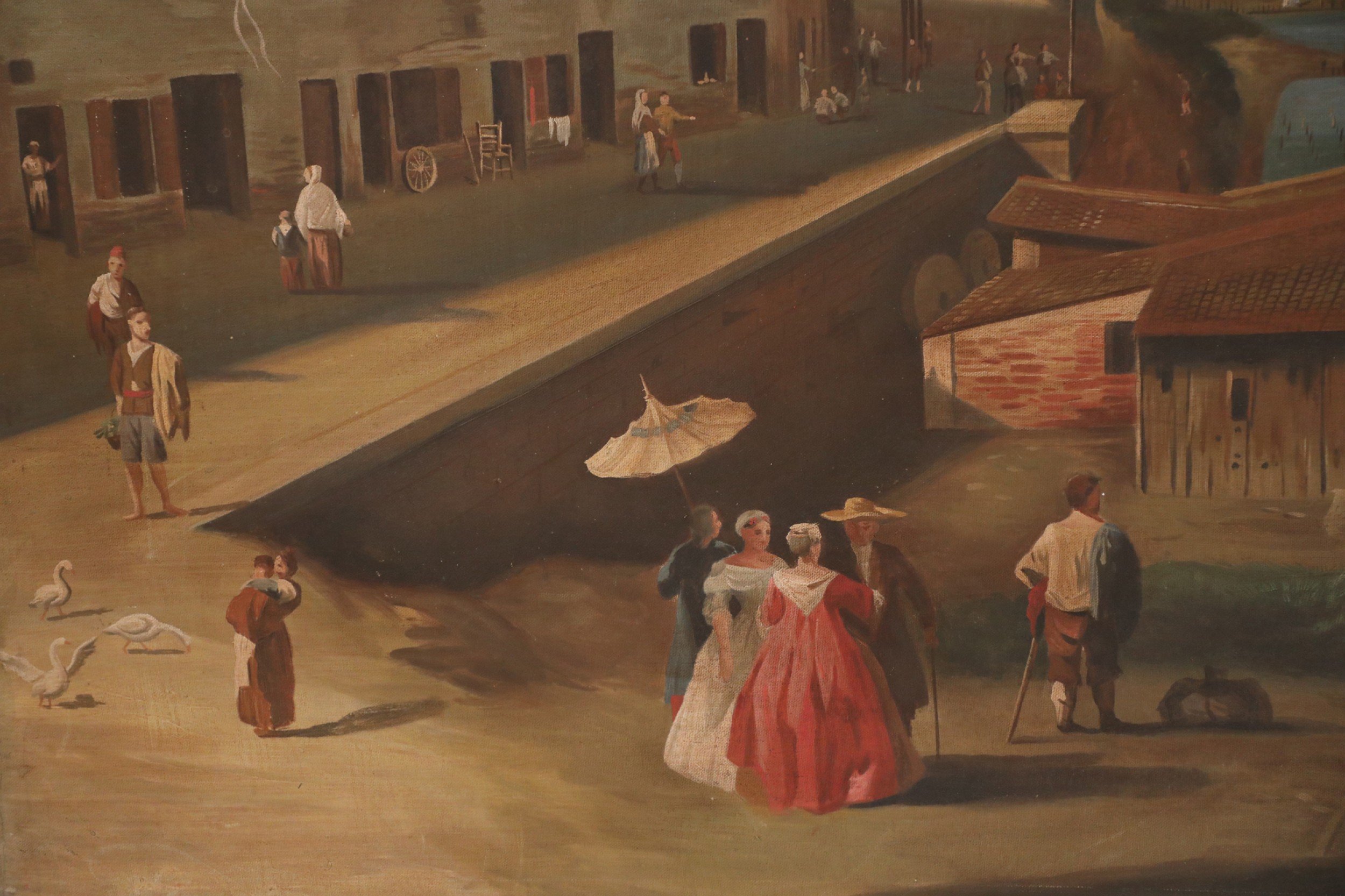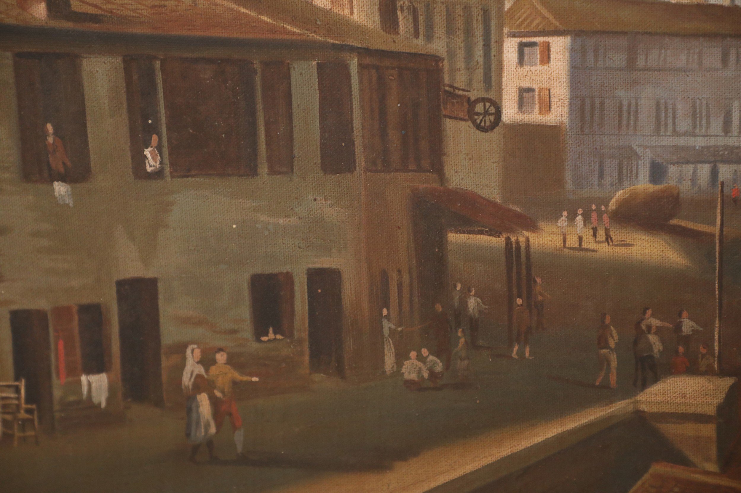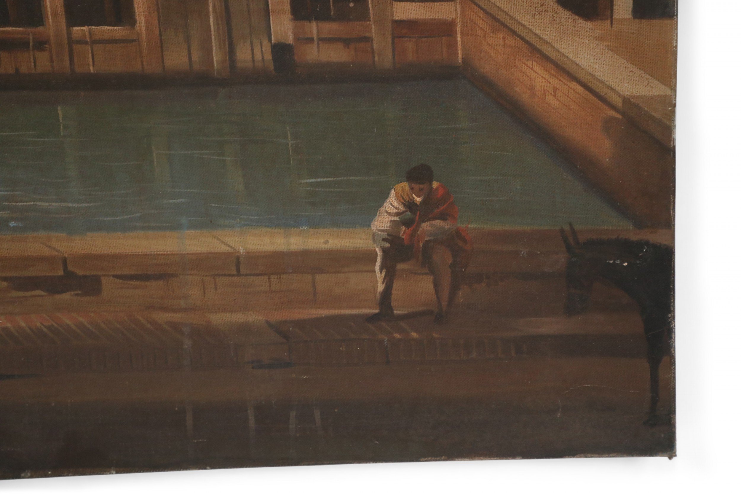 Style: Italian Materials & Techniques: Canvas Category: Cleared Art Condition: Light wear and some buckling in canvas. Good; Wear consistent with age and use
