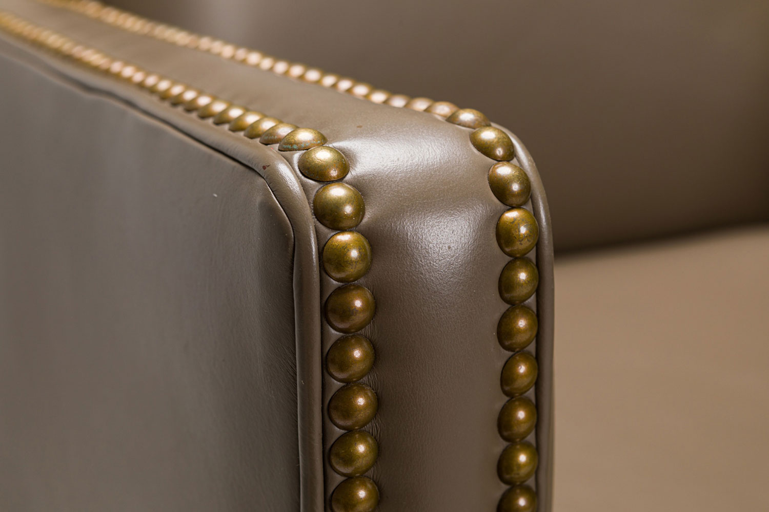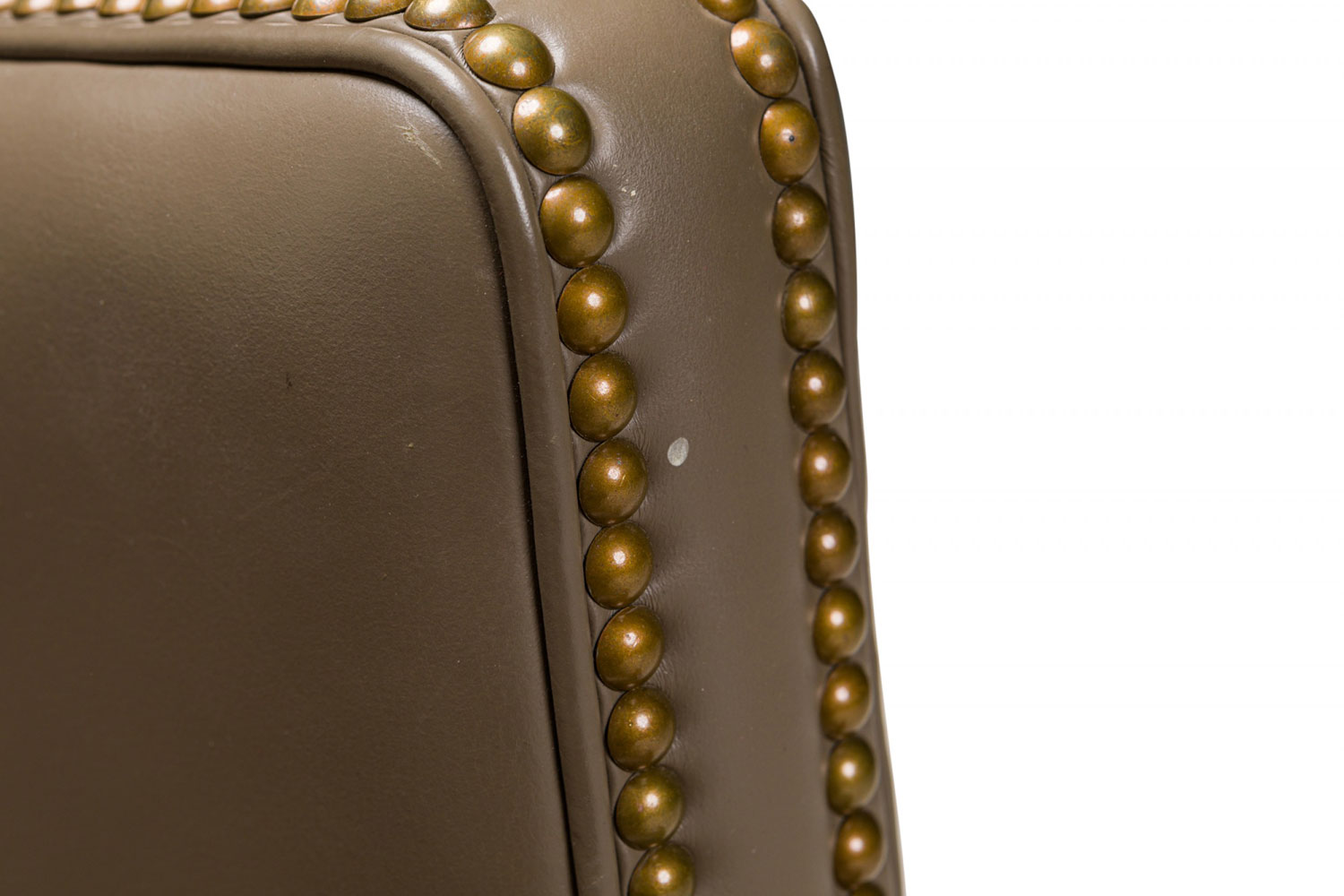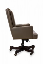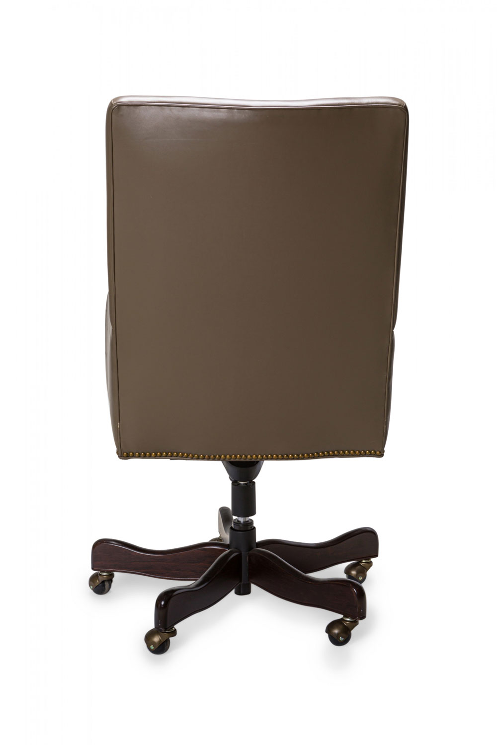 Contemporary Taupe Leather Brass Studded Swivel / Rolling Office Chair