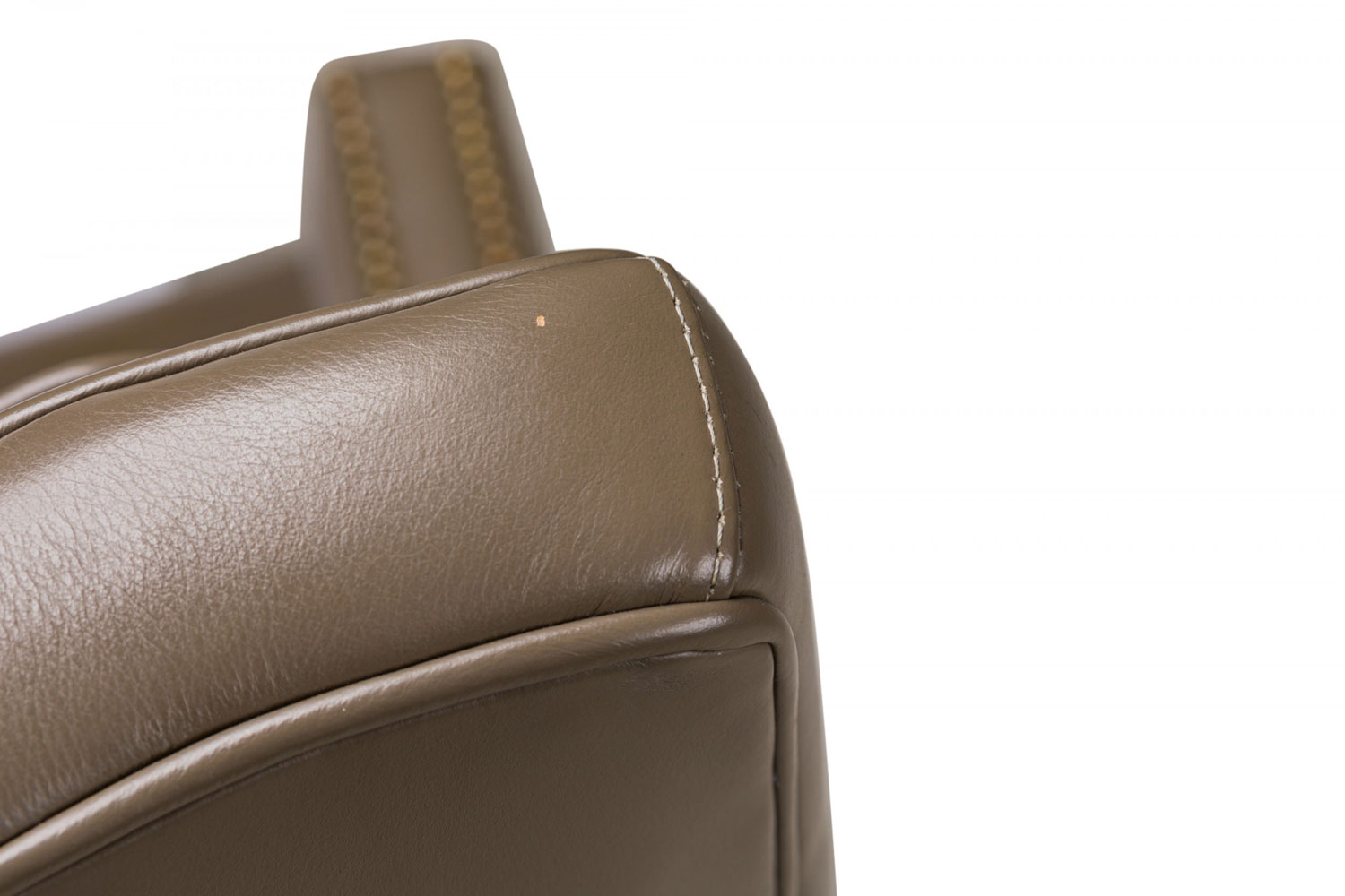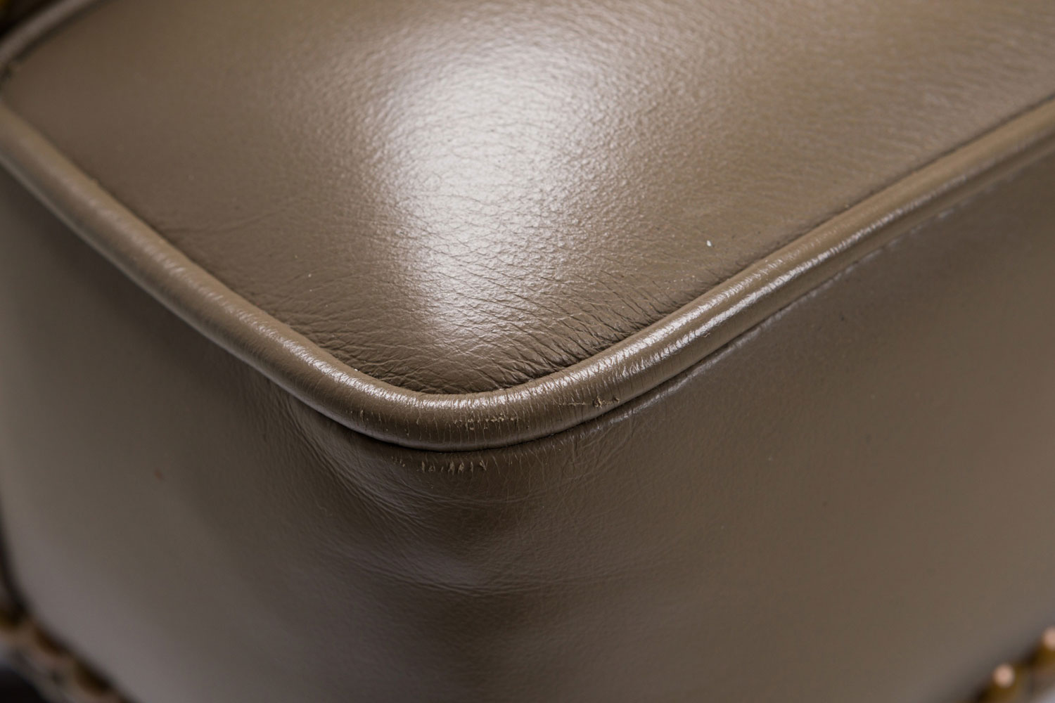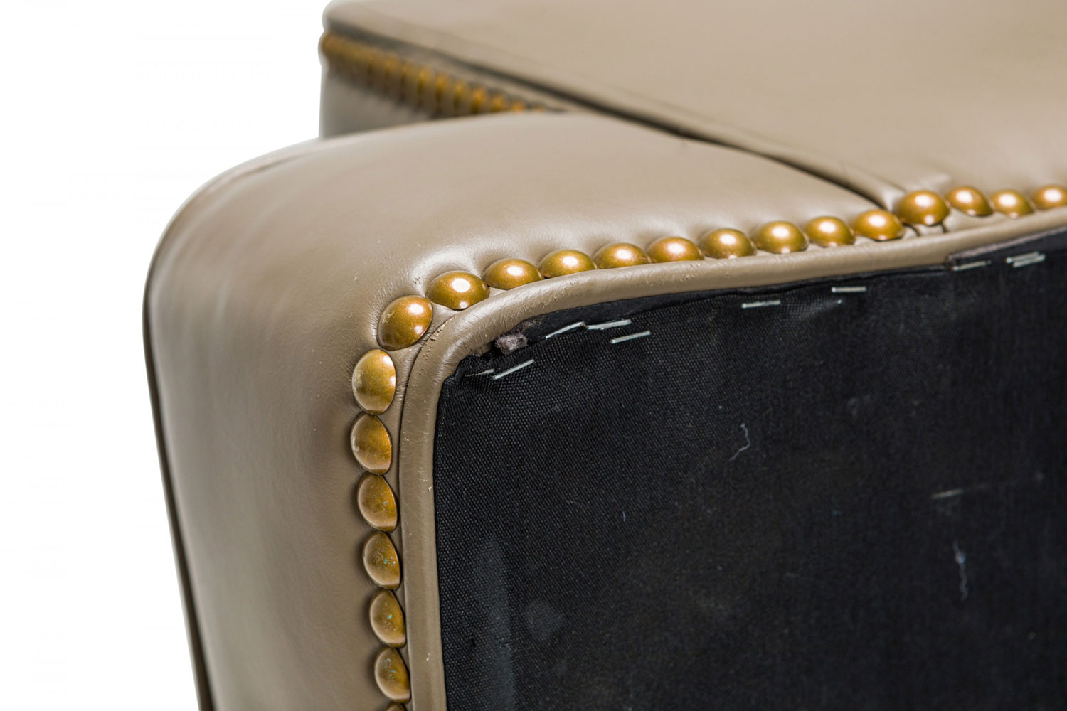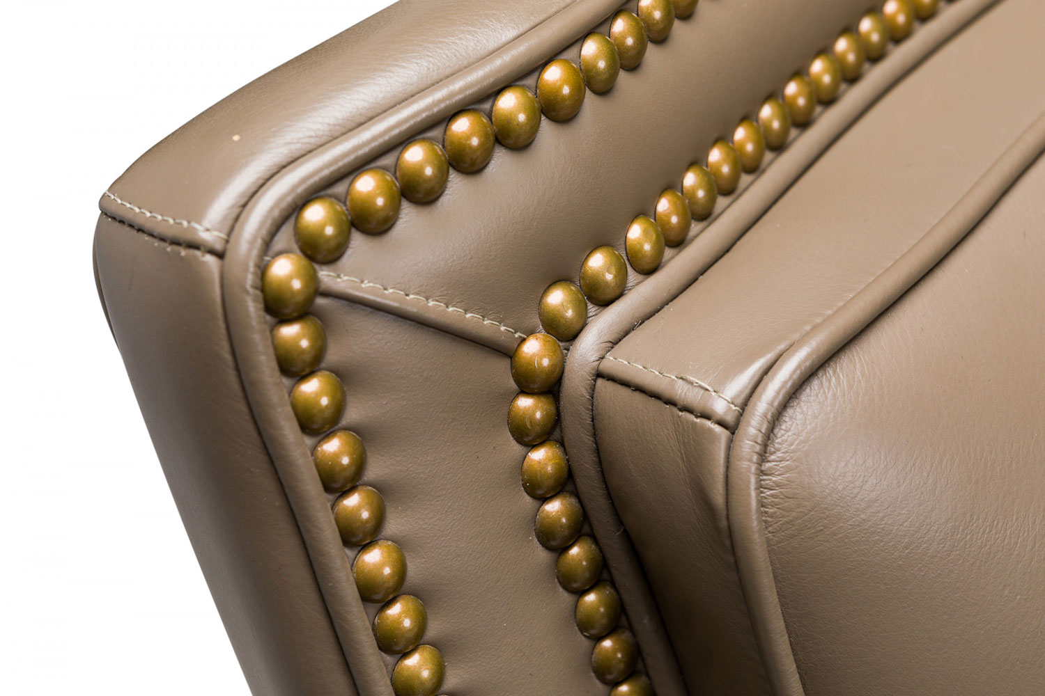 Contemporary Taupe Leather Brass Studded Swivel / Rolling Office Chair