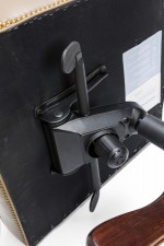 Style: Contemporary/Post-War Design Materials & Techniques: Brass, leather, metal, upholstered, walnut, wood Category: Seating, Office/Library Good; Wear consistent with age and use