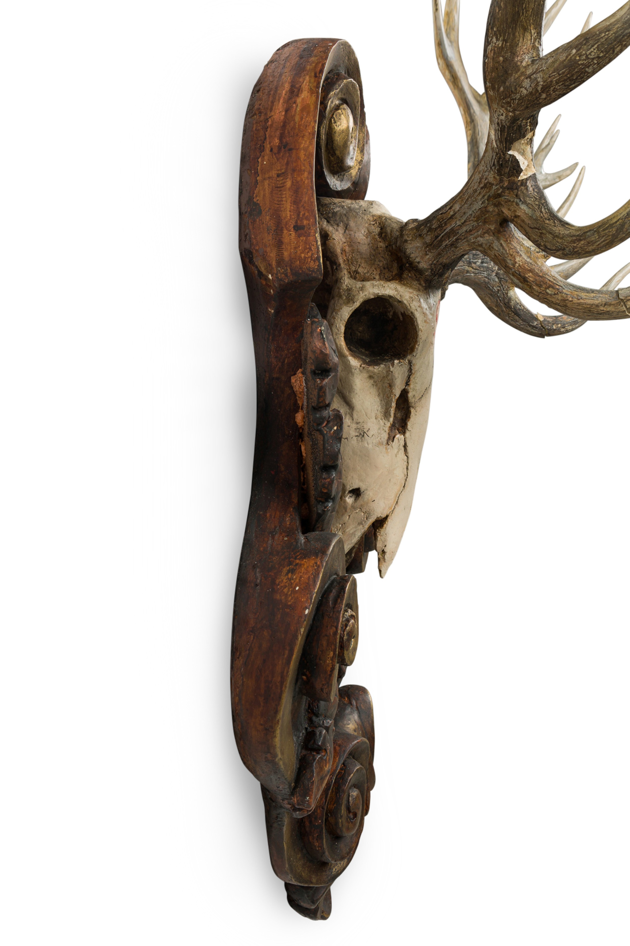 Style: Rustic Materials & Techniques: Wood Category: Sporting/Gaming Condition: Damages to antlers,plaque still in good condition Good; Wear consistent with age and use