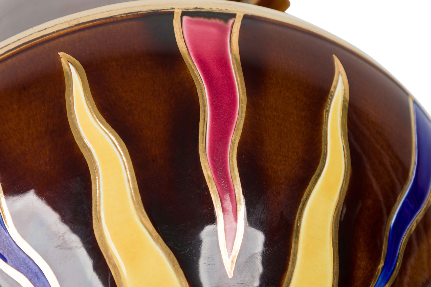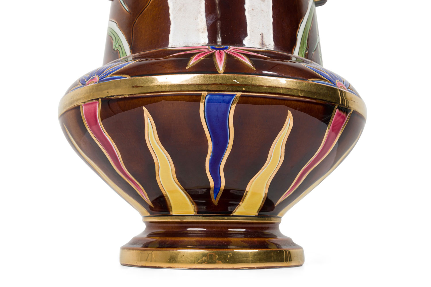 Dutch Victorian Aesthetic Movement Monumental Gilt Painted Ceramic Vessel