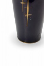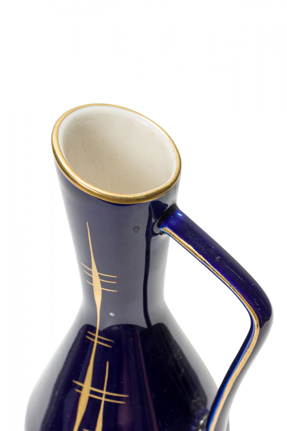Echt Kobalt German Mid-Century Feathered Vertical Gold Line Design Deep Blue Glazed Ceramic Pitcher