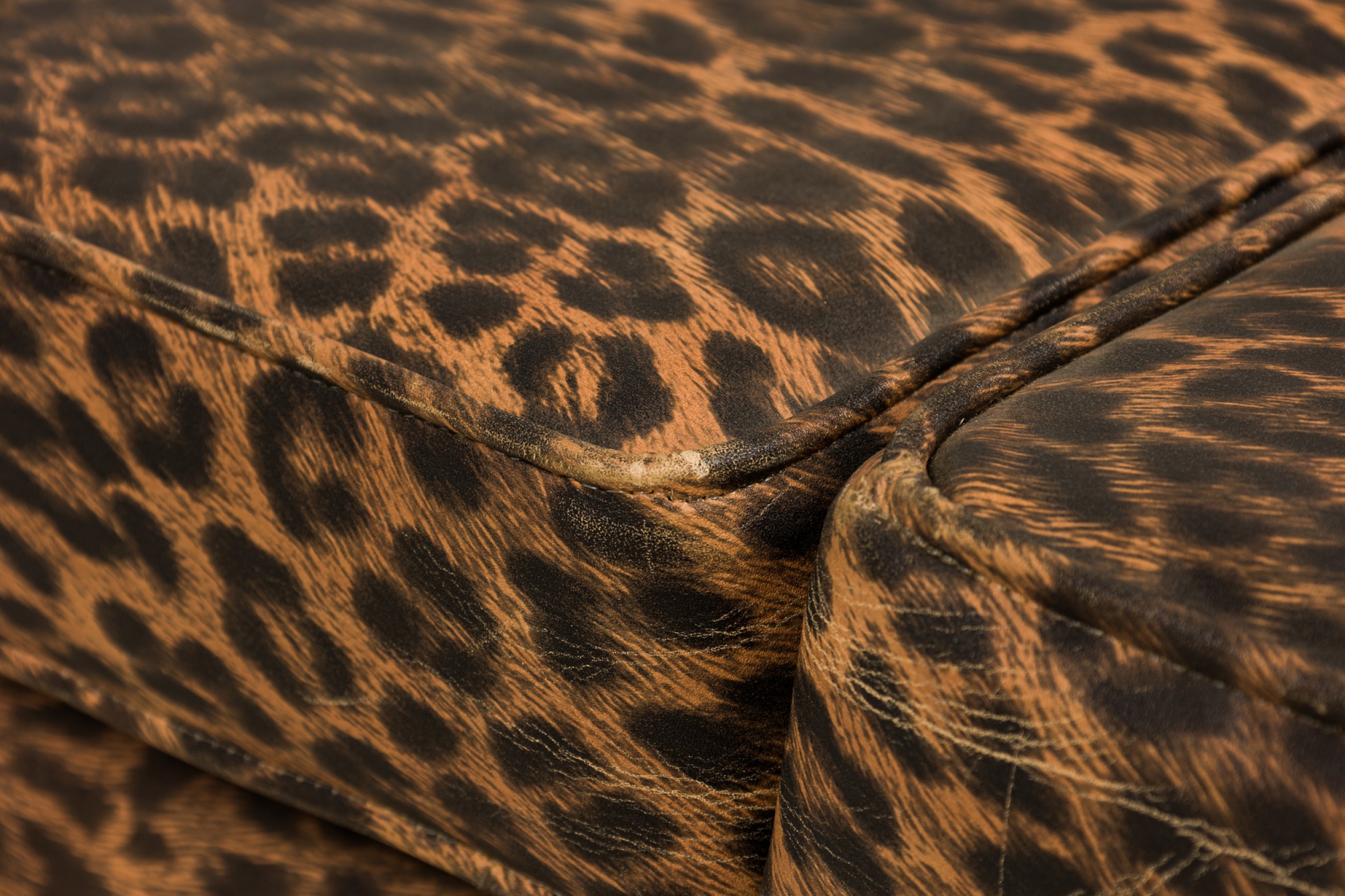 Edward J Wormley for Dunbar American Mid-Century Vinyl Leopard Print Upholstered Three Seat Sofa