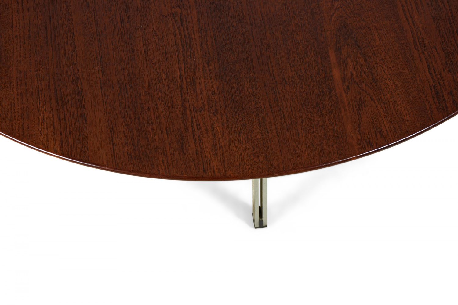 American Mid-Century 'Parallel Bar' cocktail / coffee table with a circular walnut top supported by three satin chrome-plated steel legs. (FLORENCE KNOLL).