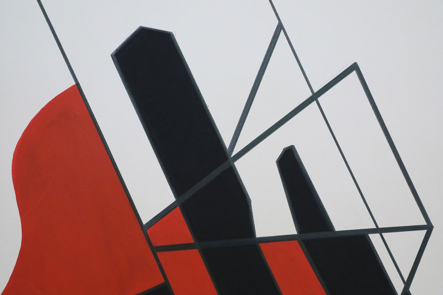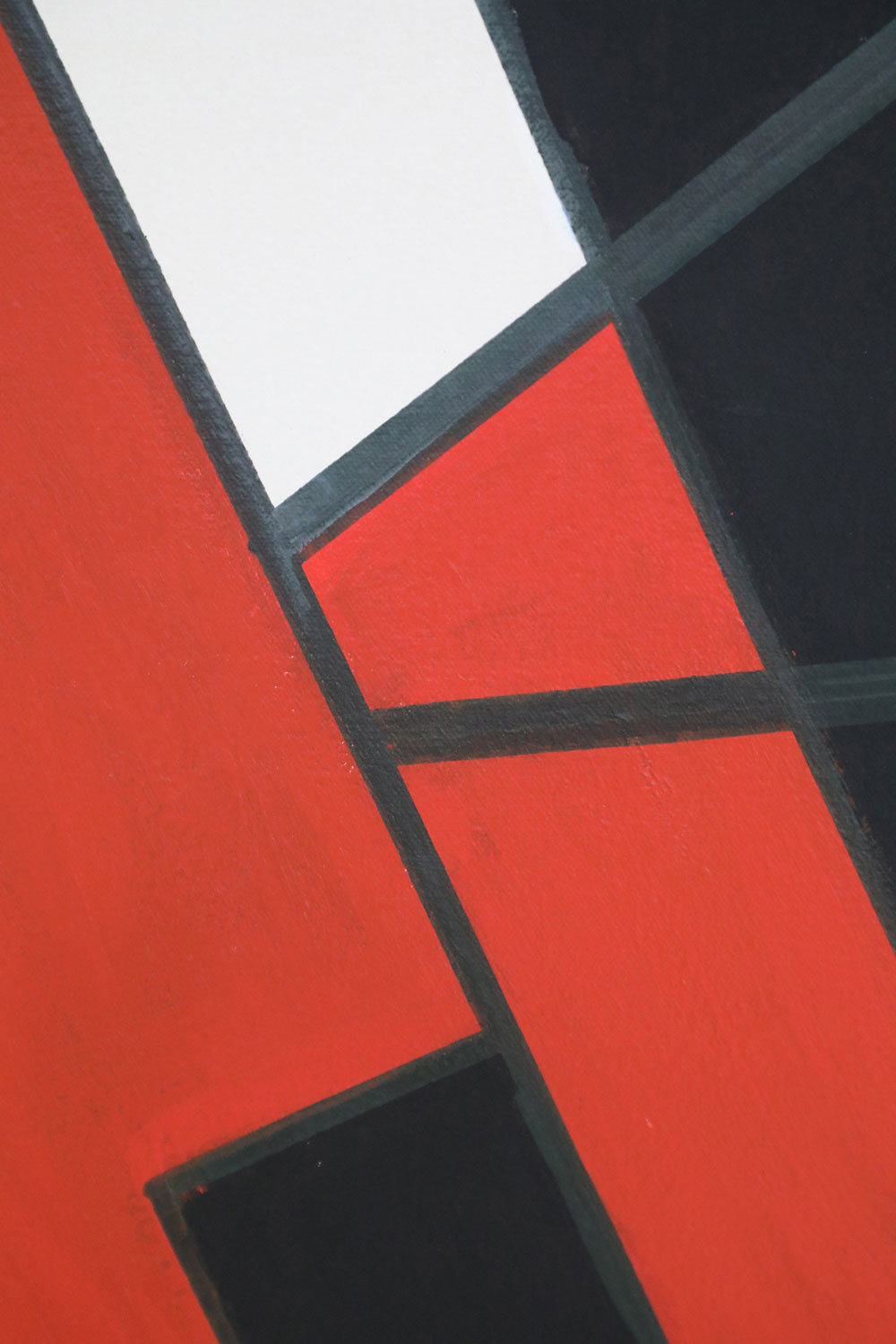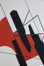 Framed Acrylic Abstract Painting of Geometric Shapes in Black, Red, and White