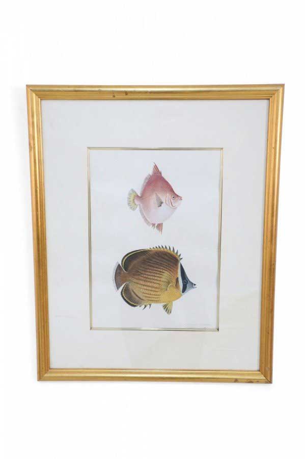 Framed Color Lithograph of Brown and Multi-Colored Tropical Fish