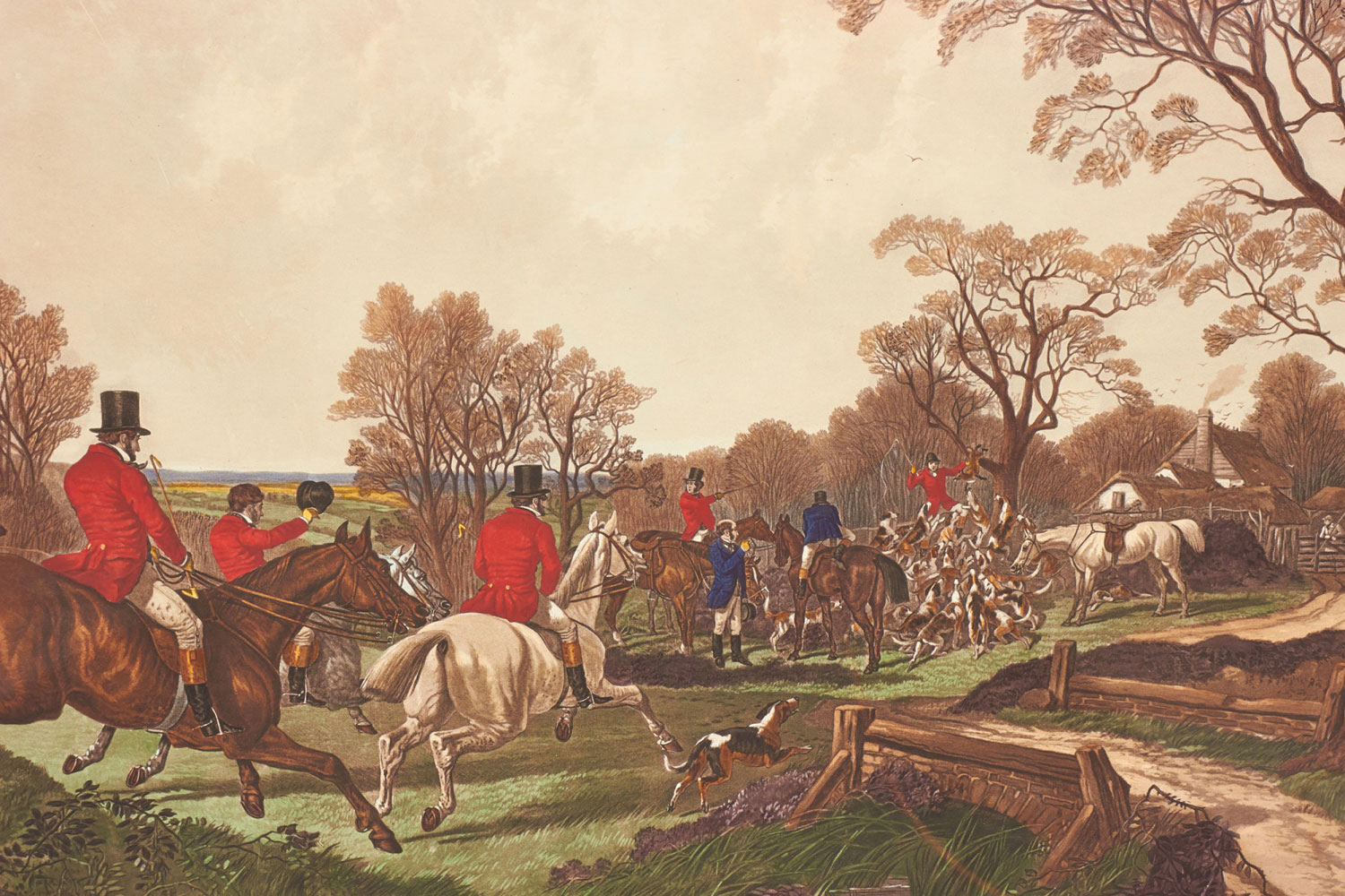 Framed English Victorian Lithograph Print of The Capture of a Fox on a Hunt