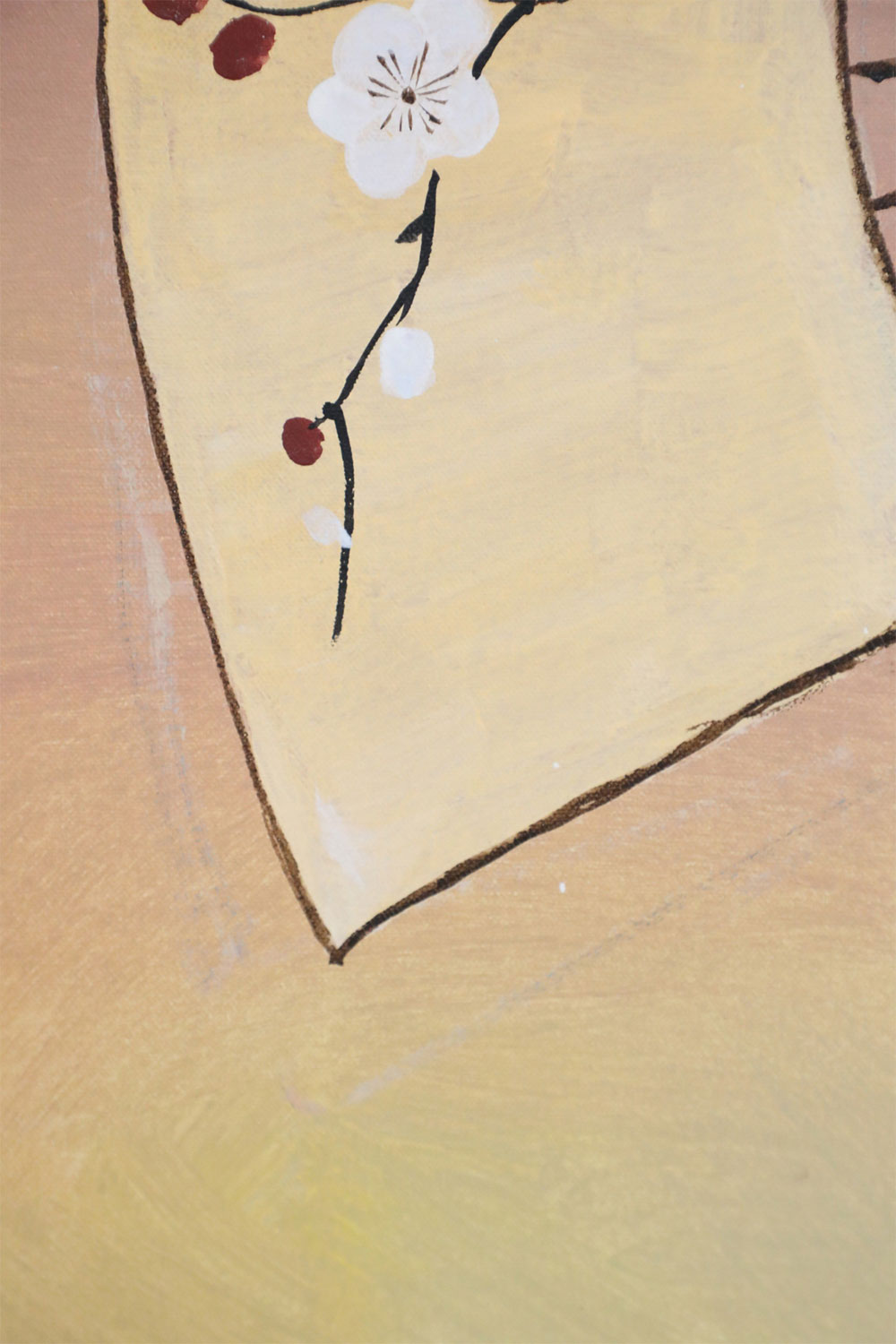 Framed Vintage Chinese Acylic Abstract Painting of Waves and Fans