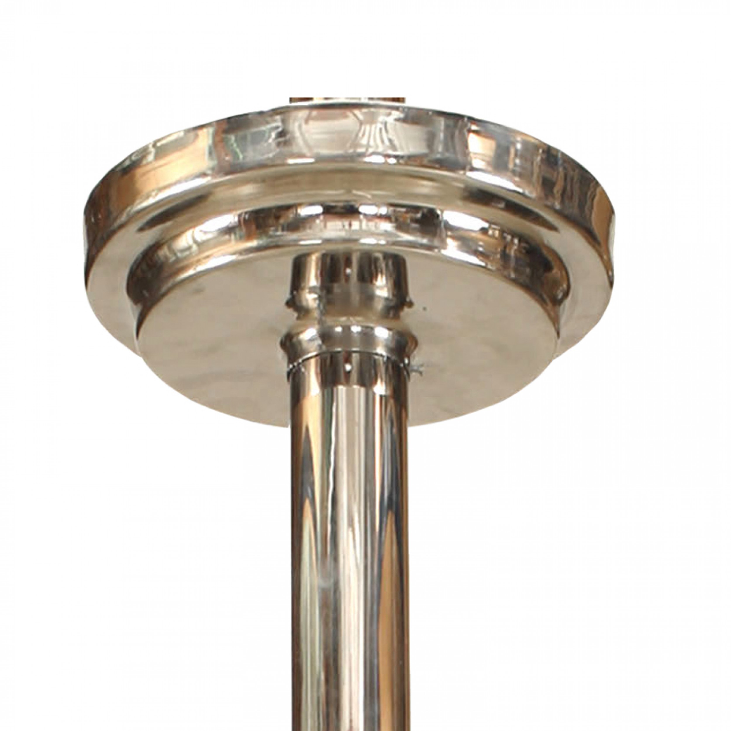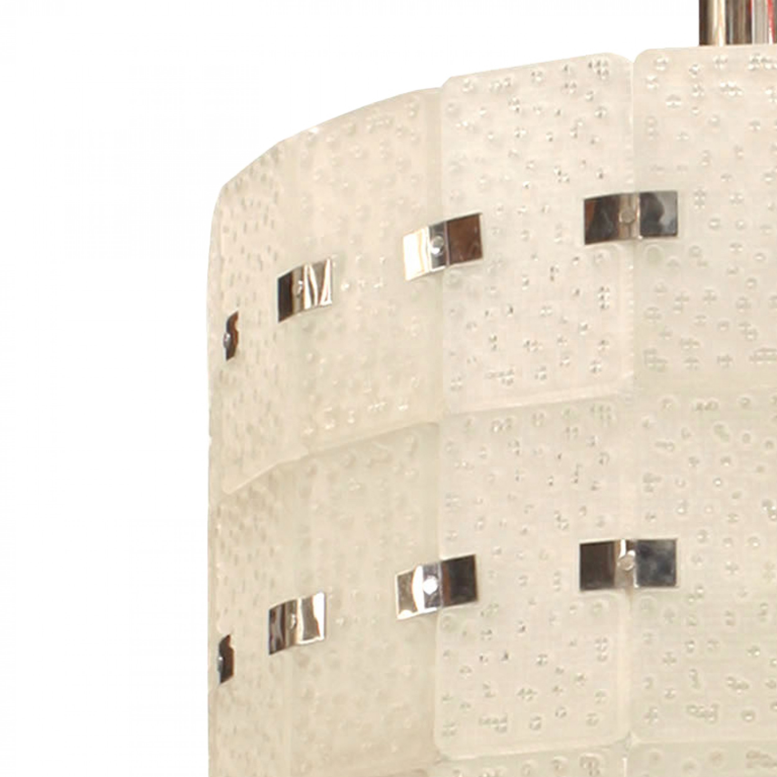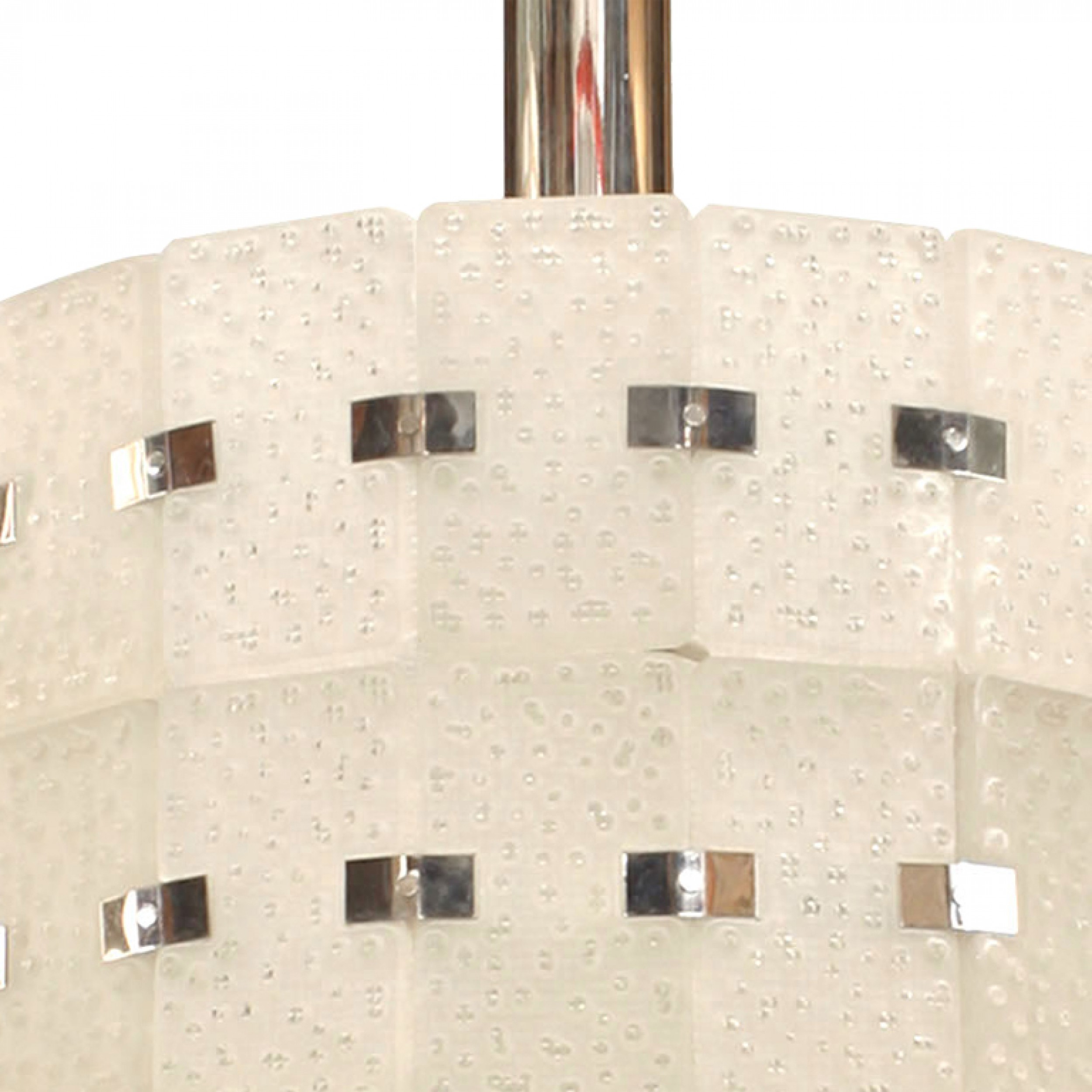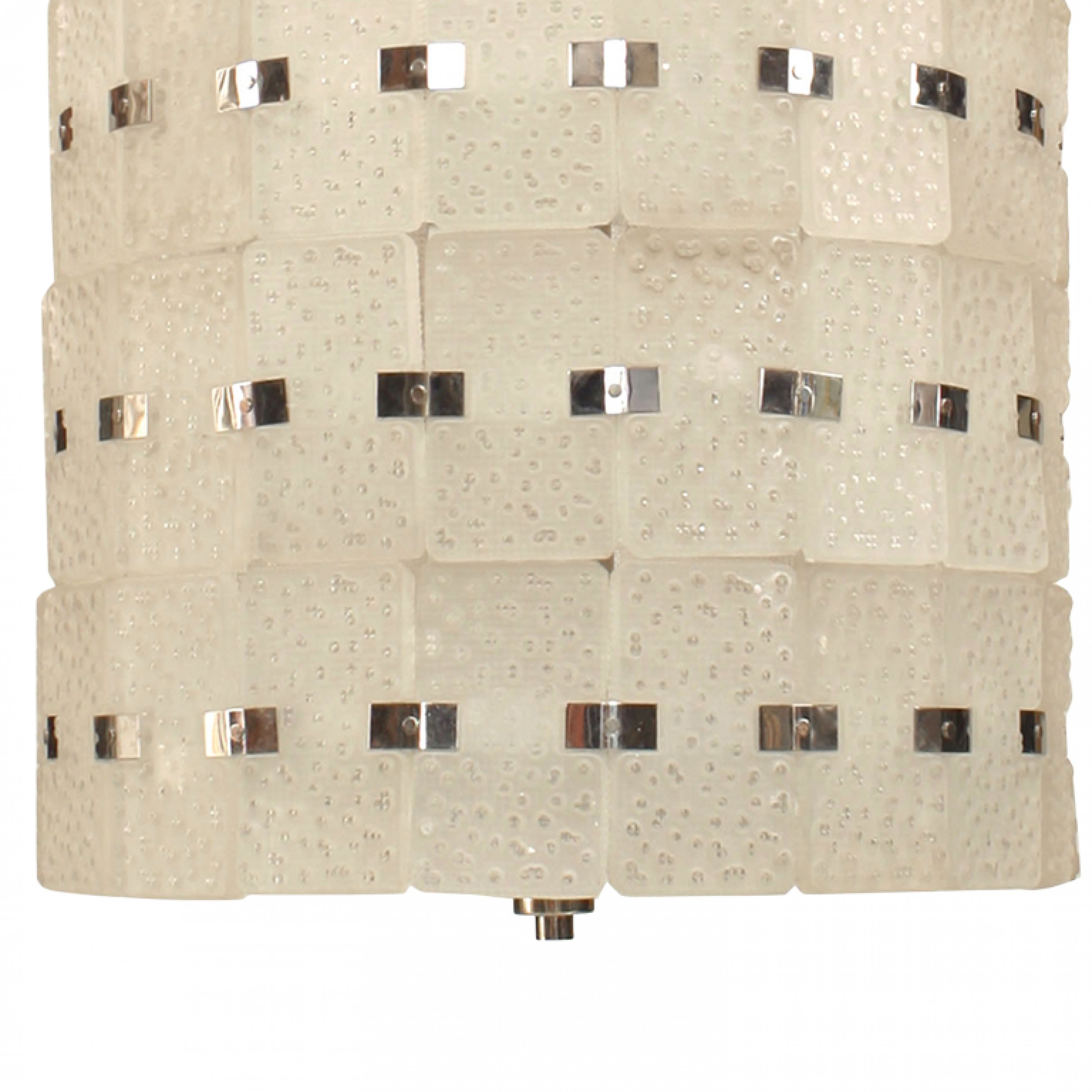2 French Art Deco cylindrical shaped chandeliers with molded frosted rectangular panels supported by a chrome center post (SABINO) ) (PRICED EACH).