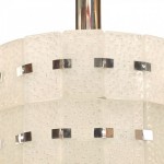 2 French Art Deco cylindrical shaped chandeliers with molded frosted rectangular panels supported by a chrome center post (SABINO) ) (PRICED EACH)