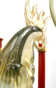 Bauges French Mid-Century Metal and Murano Glass Bird Chandelier