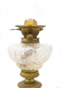 French Victorian Porcelain Oil Lamp with Gilt Mounts