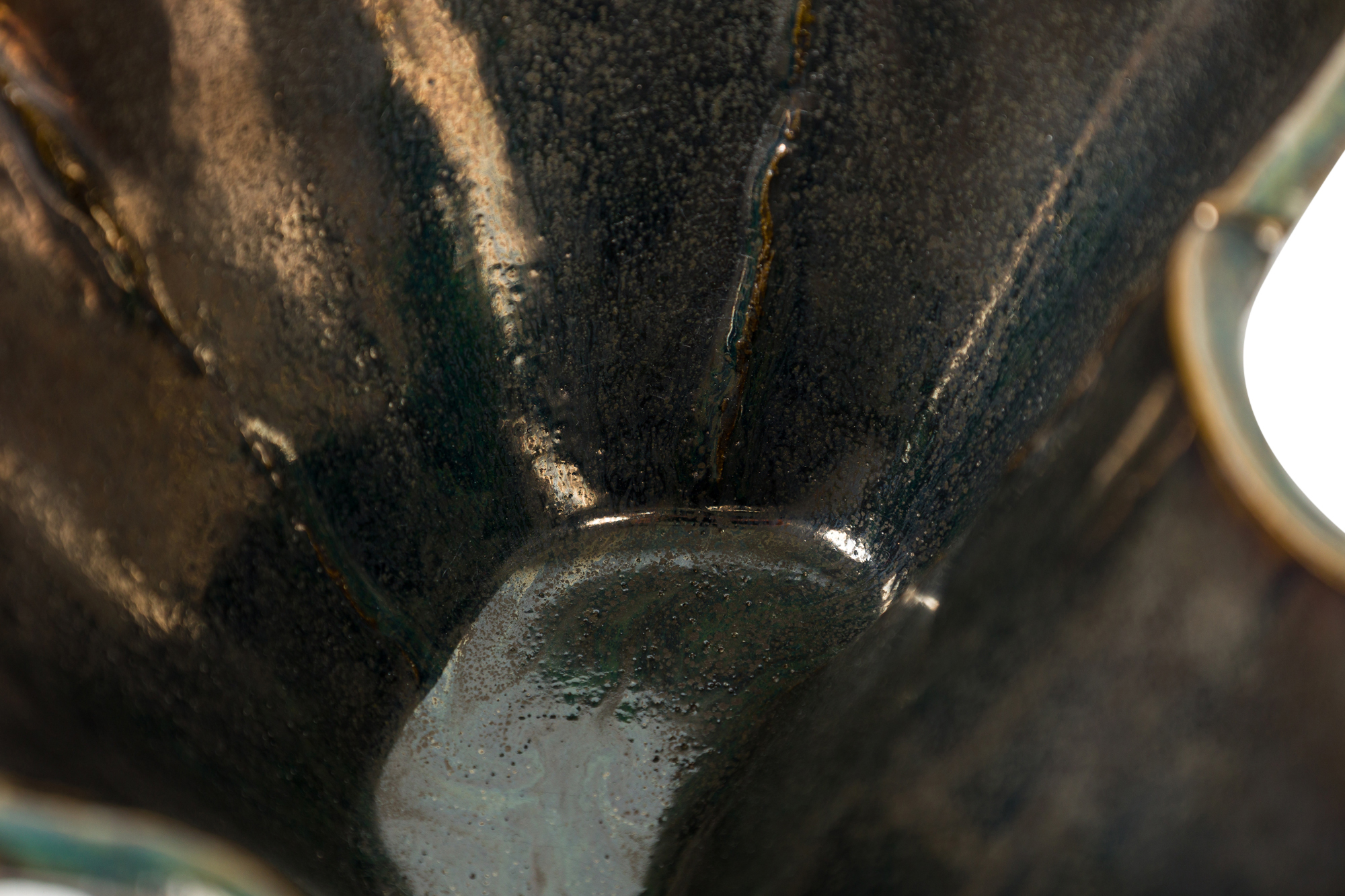 Gary DiPasquale Contemporary Low Asymmetrical Wavy Vessel with Black, White and Grey Textured Glaze