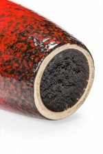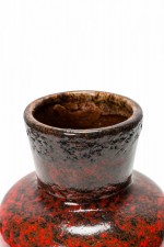 German Mid-Century Red and Black Glazed Fat Lava Ceramic Vase