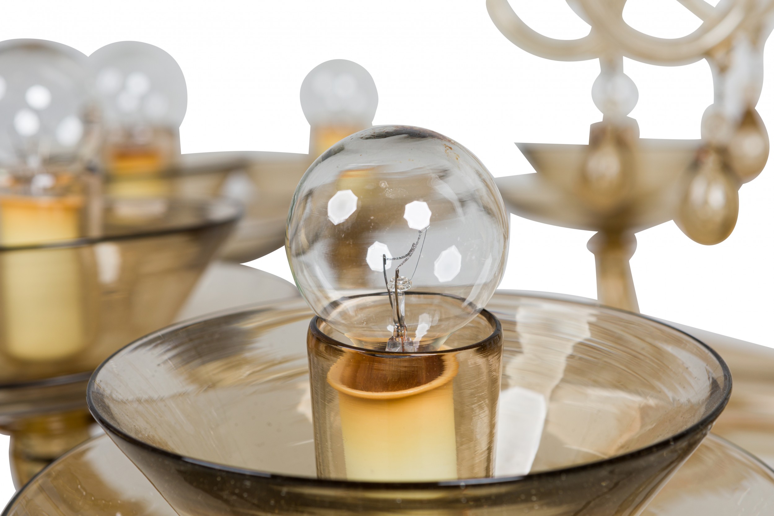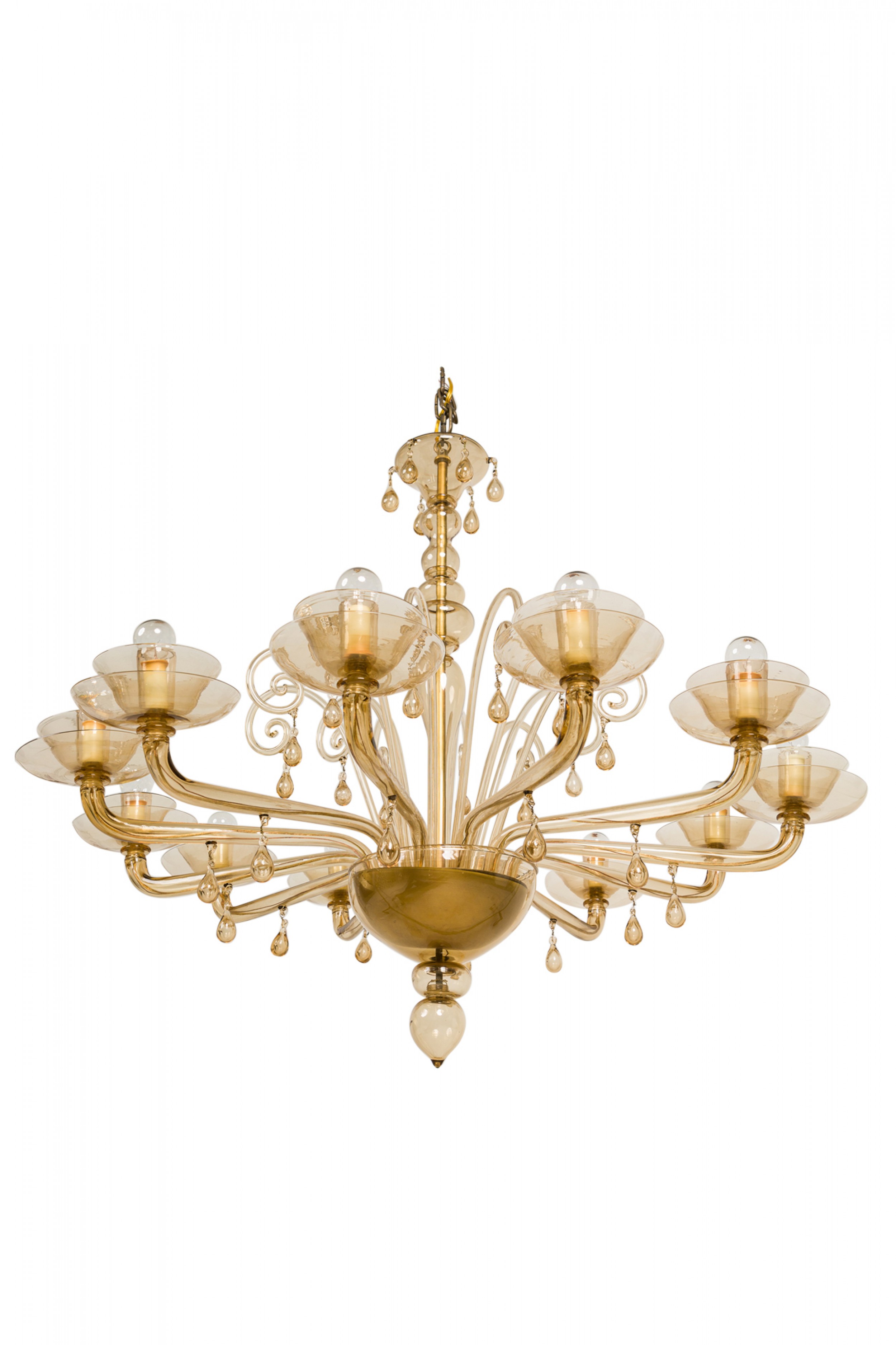 Italian Murano Art Moderne Amber Blown Glass 12-Arm Chandelier