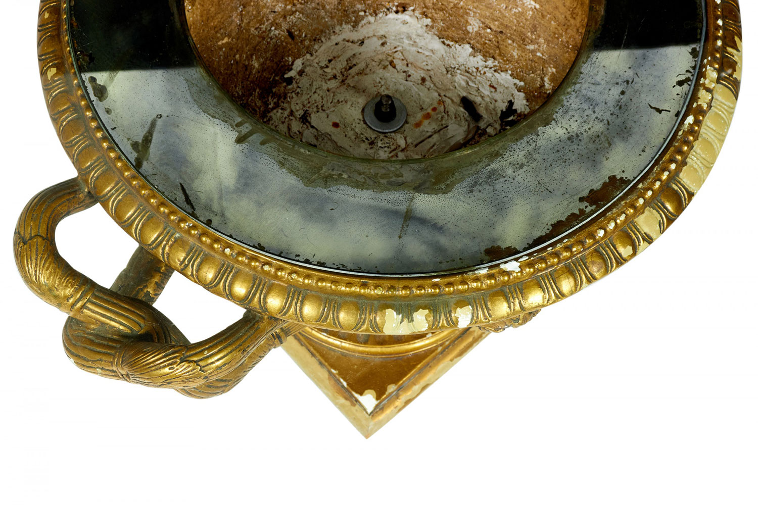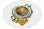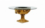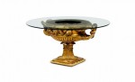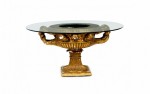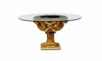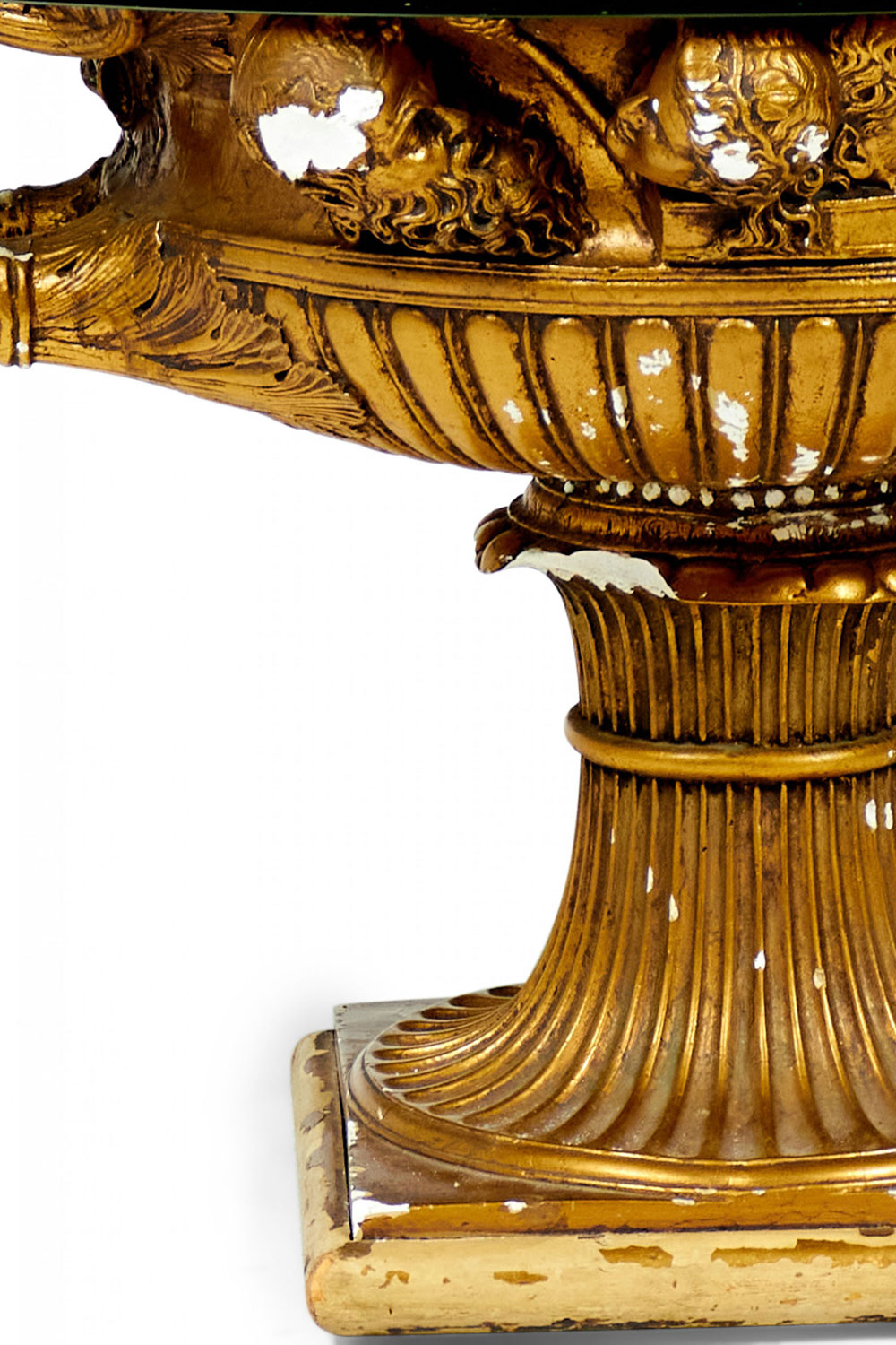 Style: Mid-Century Materials & Techniques: Glass, plaster Category: Tables Condition: Significant chipping to plaster, several visible cracks and repairs, losses to gilt finish. Plaster urn base is fragile.
