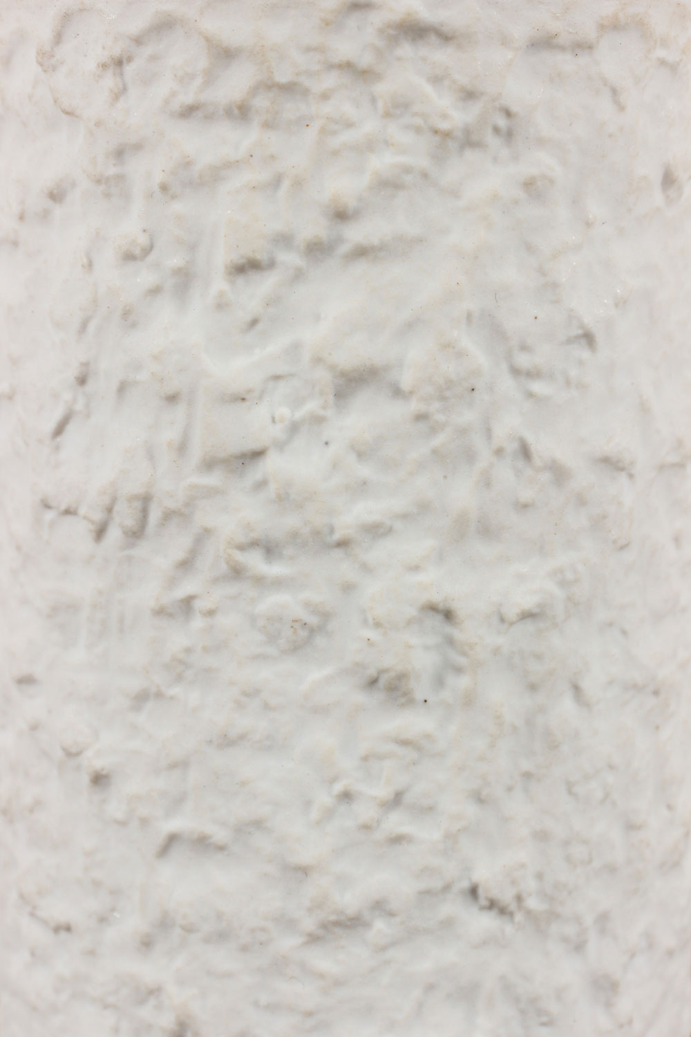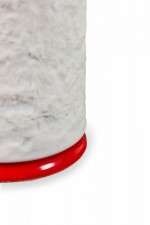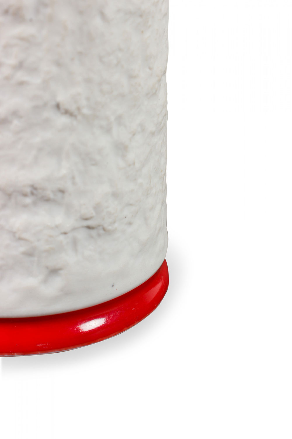 West German Mid-Century porcelain vase with a white textured cylindrical mouth and body, connected by a narrow red glazed porcelain neck. (Königliche Porzellan Manufaktur, mark on bottom, ROYAL PORZELLAN BAVARIA, KPM GERMANY, HANDARBEIT)(Similar piece in all white: 063039)