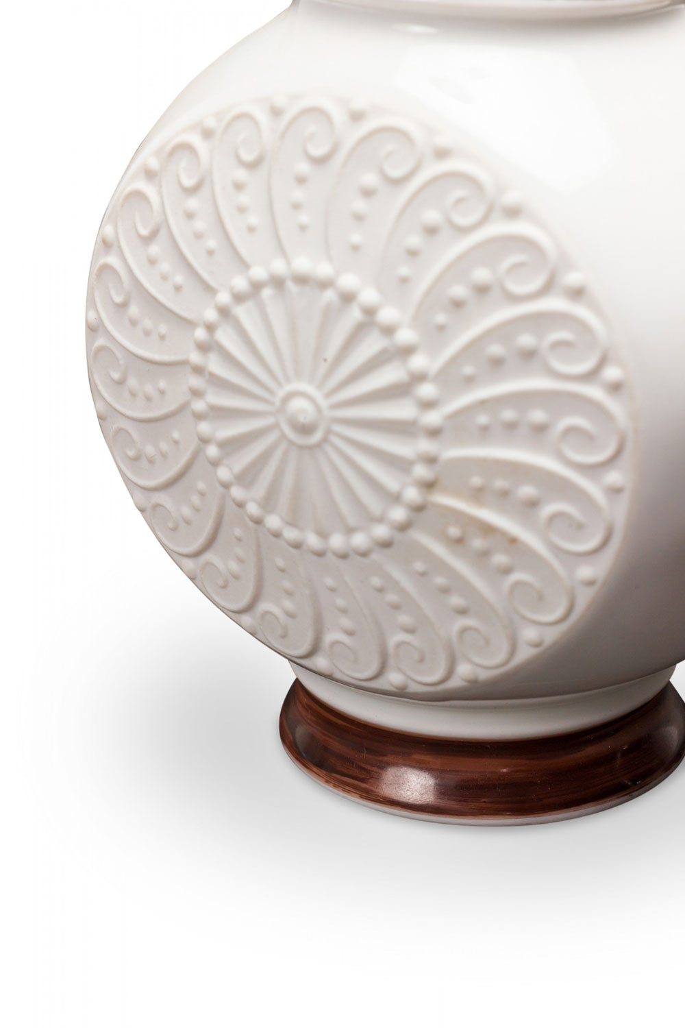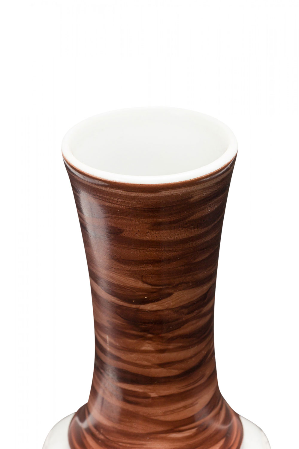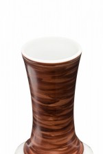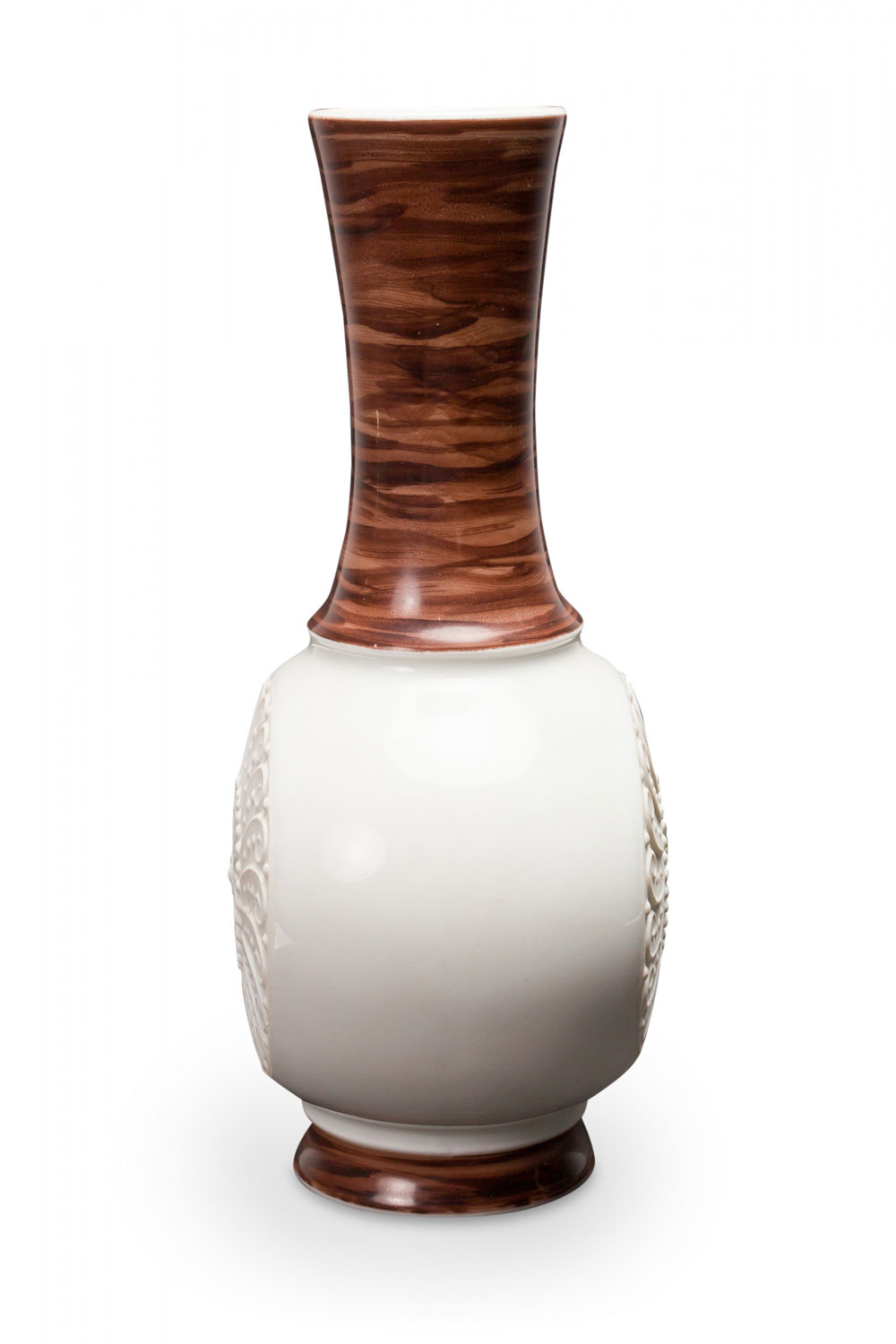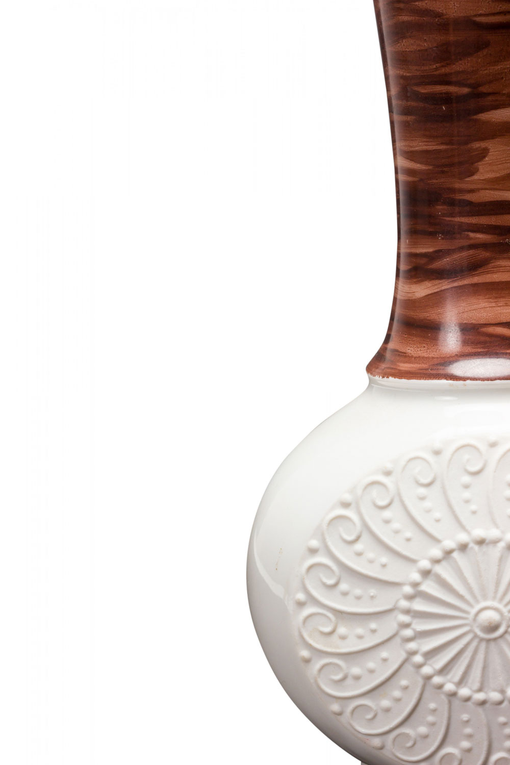 West German Mid-Century porcelain vase with a round base with a raised spiral and sunburst pattern below a tapered neck with a multi-tonal brown glaze. (mark on bottom, ROYAL PORZELLAN BAVARIA KPM GERMAN HANDARBEIT)