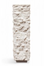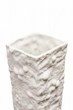 German Mid-Century square white porcelain vase with a textured exterior with small embedded seashell shapes. (mark on bottom, KUNSTPORZELLAN ILMENAU GDR)(Similar piece: 063011)