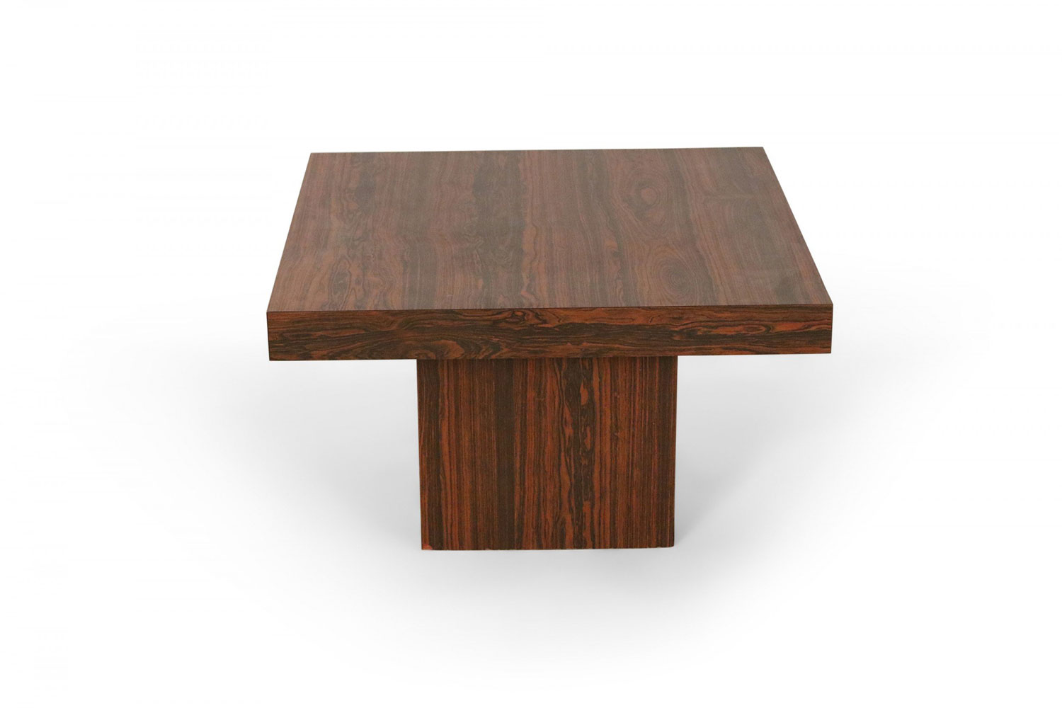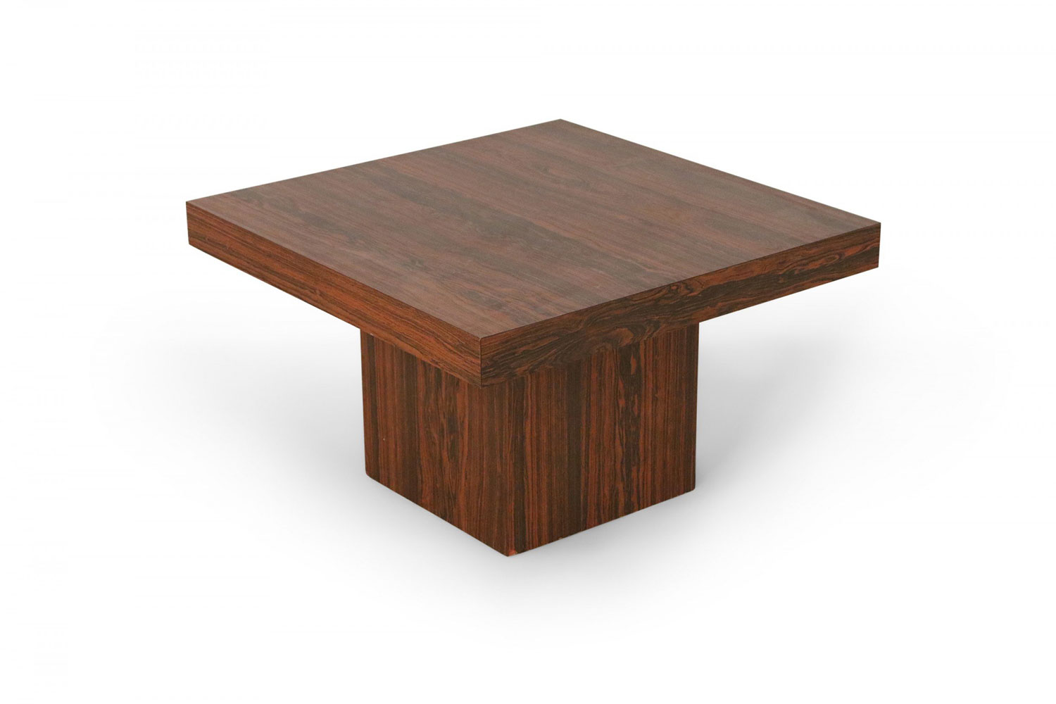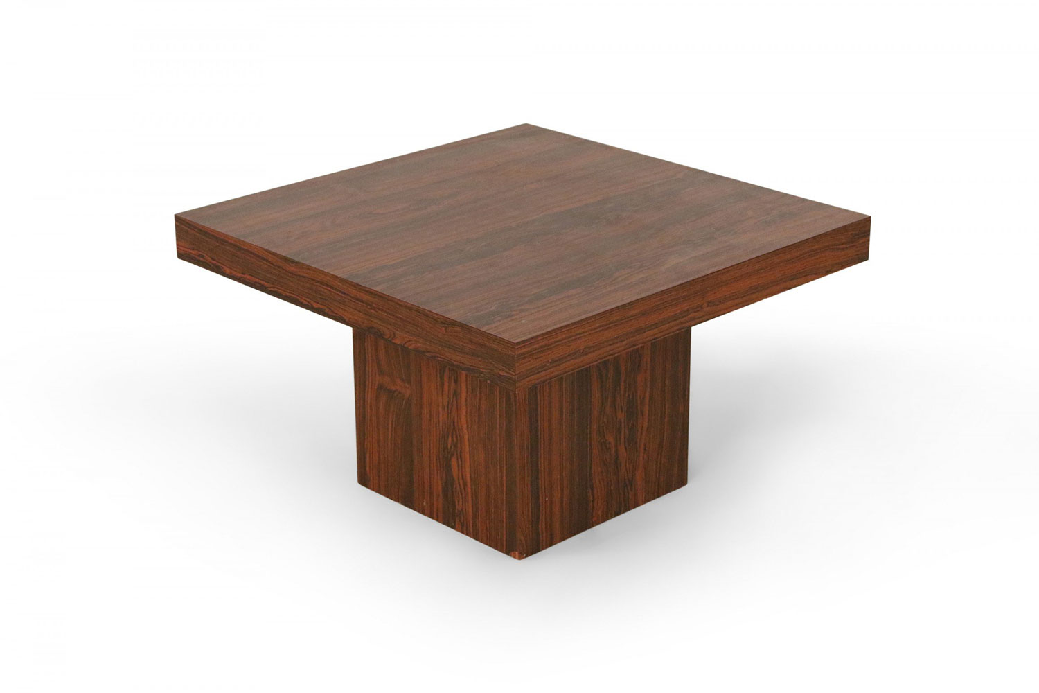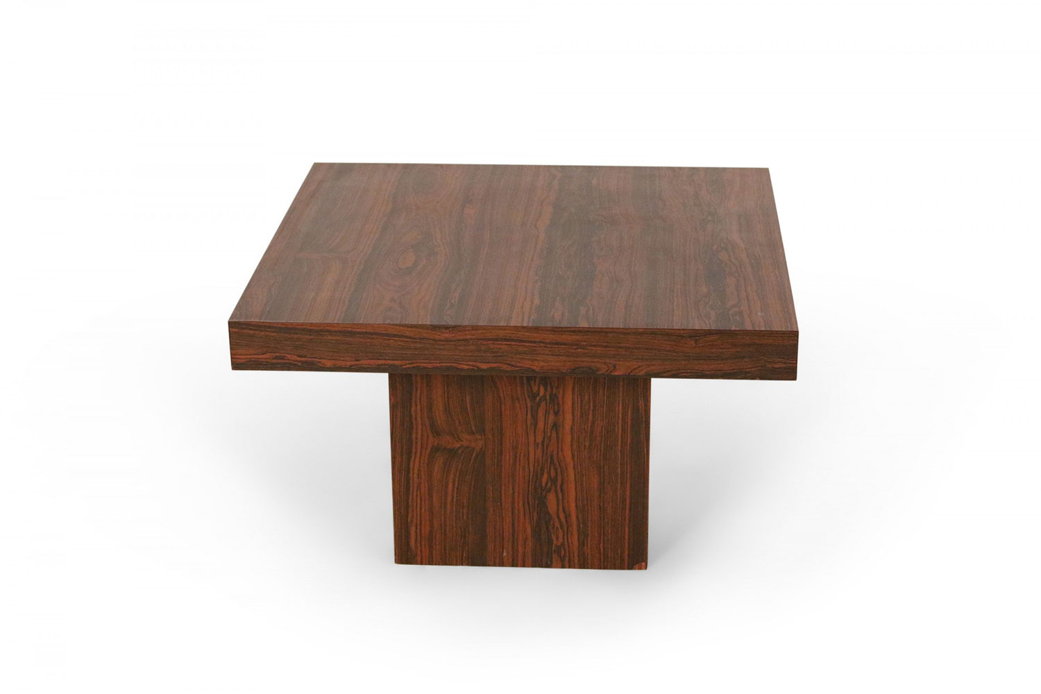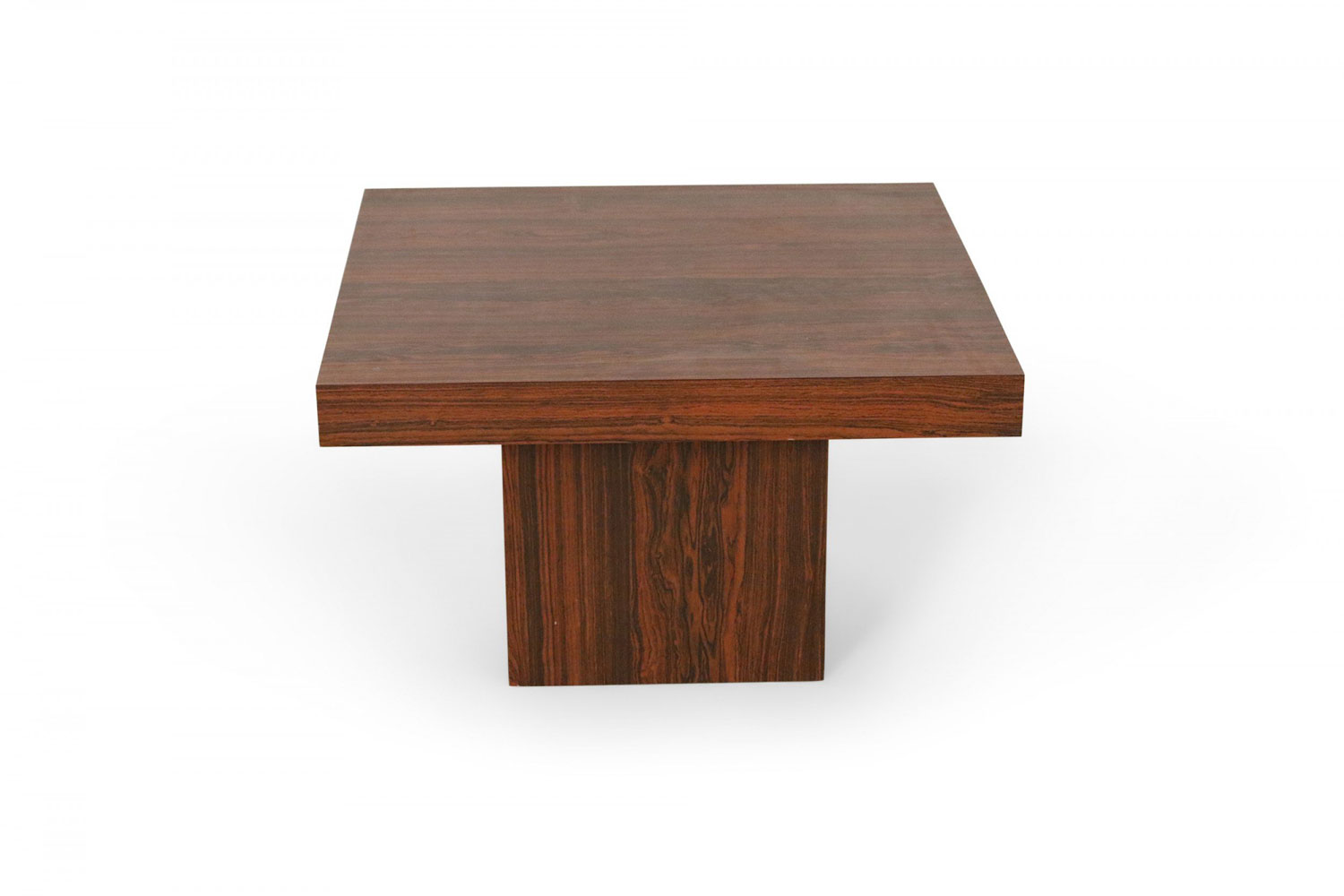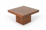Mid-Century Danish walnut end table with square top and smaller square pedestal base.