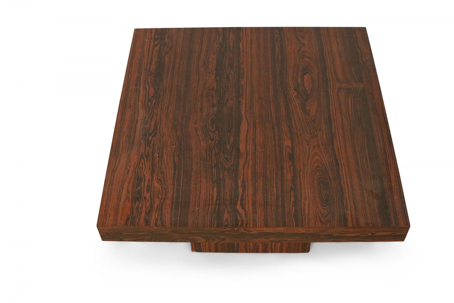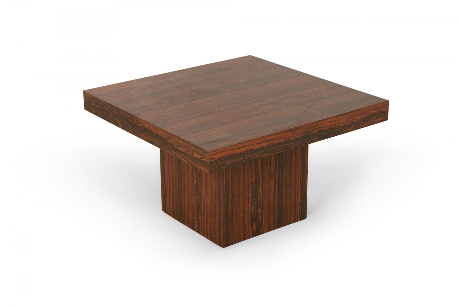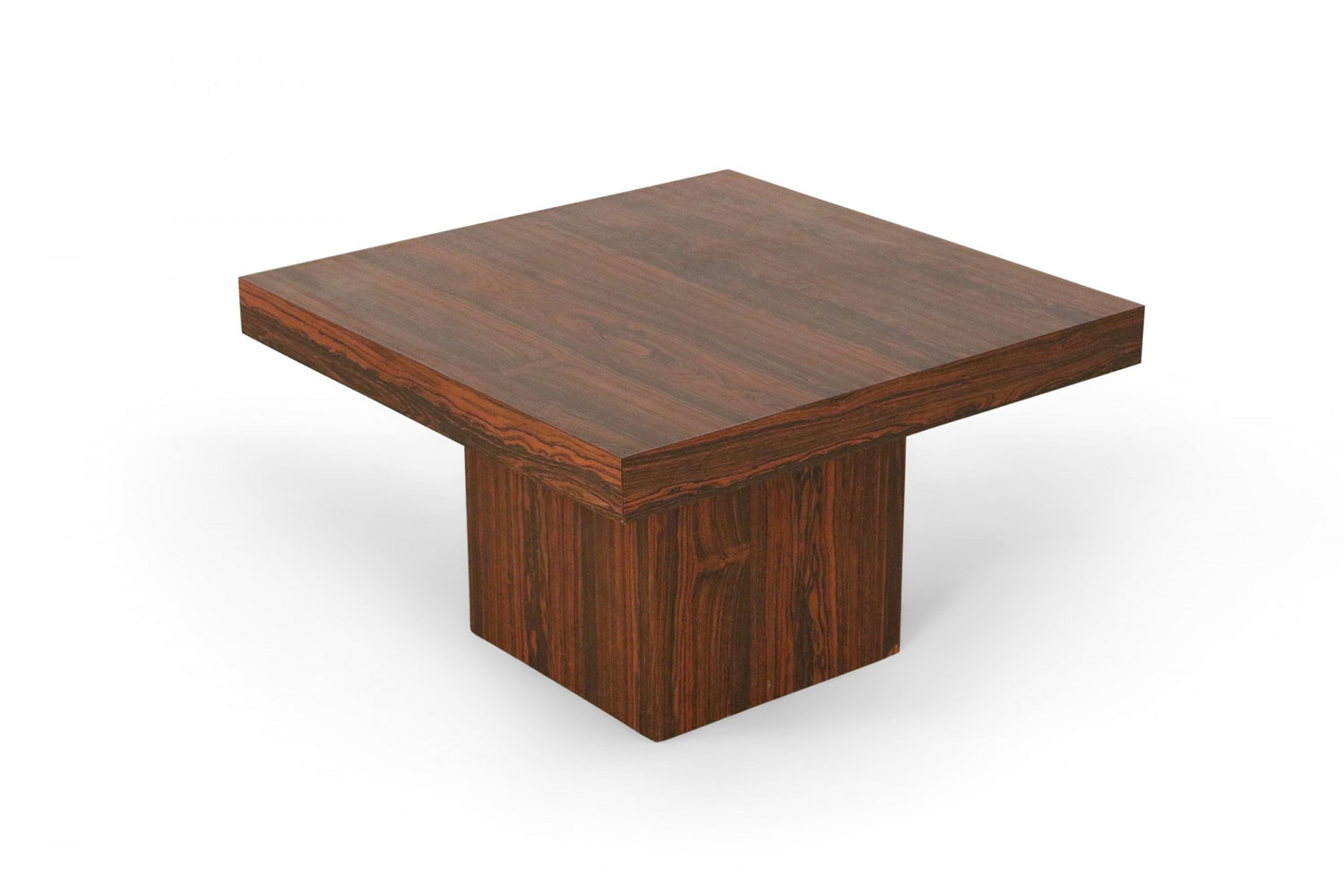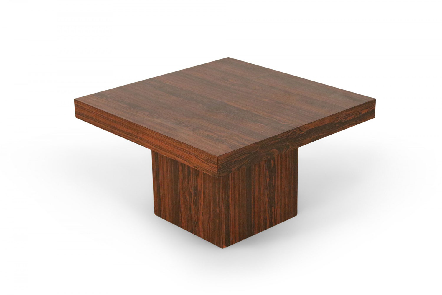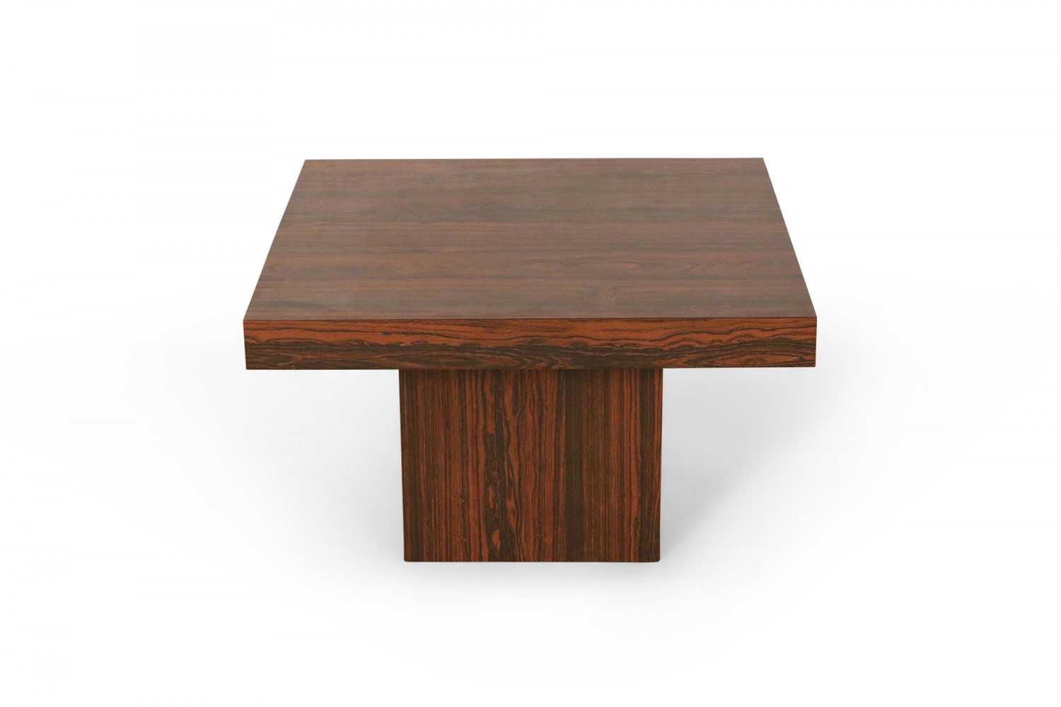 Mid-Century Danish walnut end table with square top and smaller square pedestal base.