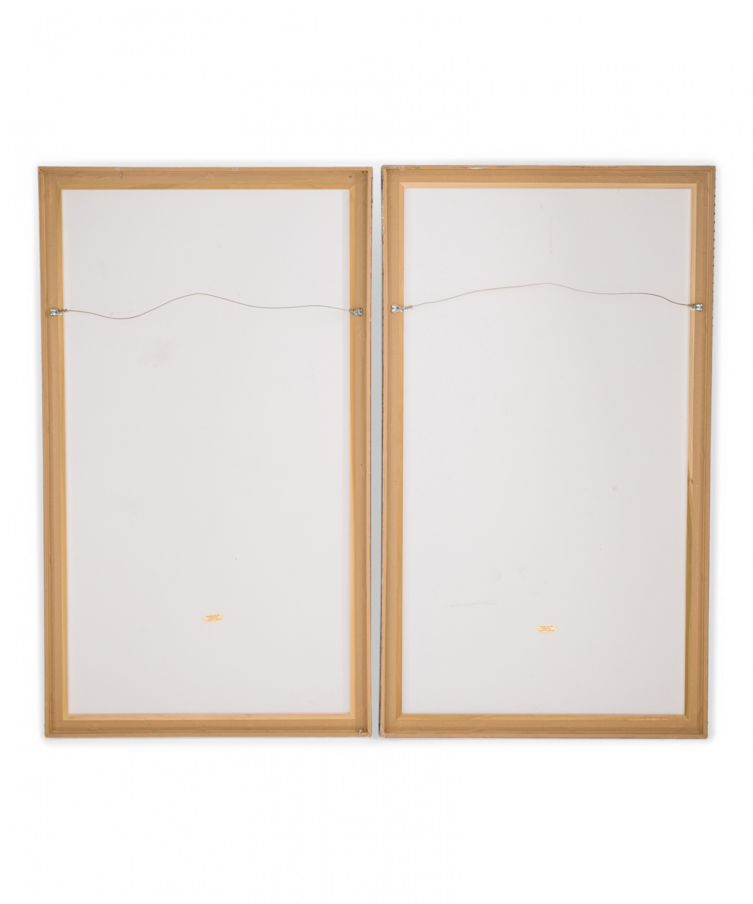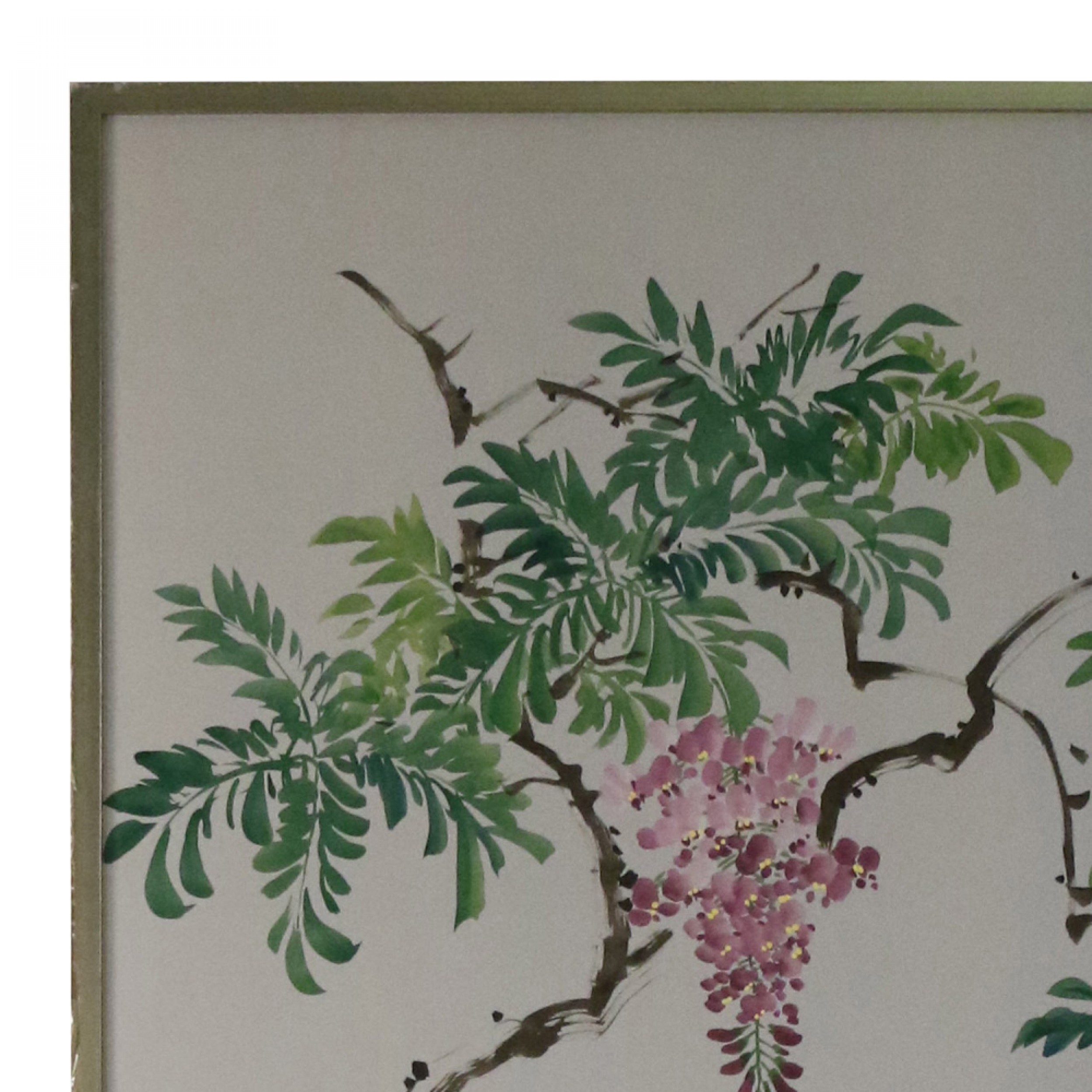 Style: Mid-Century Materials & Techniques: Metal, silk, painted Category: Cleared Art Condition: Finish on frames is severely damaged, but frames are structurally sound.