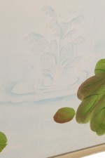 PAIR of Mid-Century Chinese style painted gray silk panels featuring a pond scene with koi fish, lily pads, and trees. (PRICED AS PAIR) (Similar piece: NWL0614A).