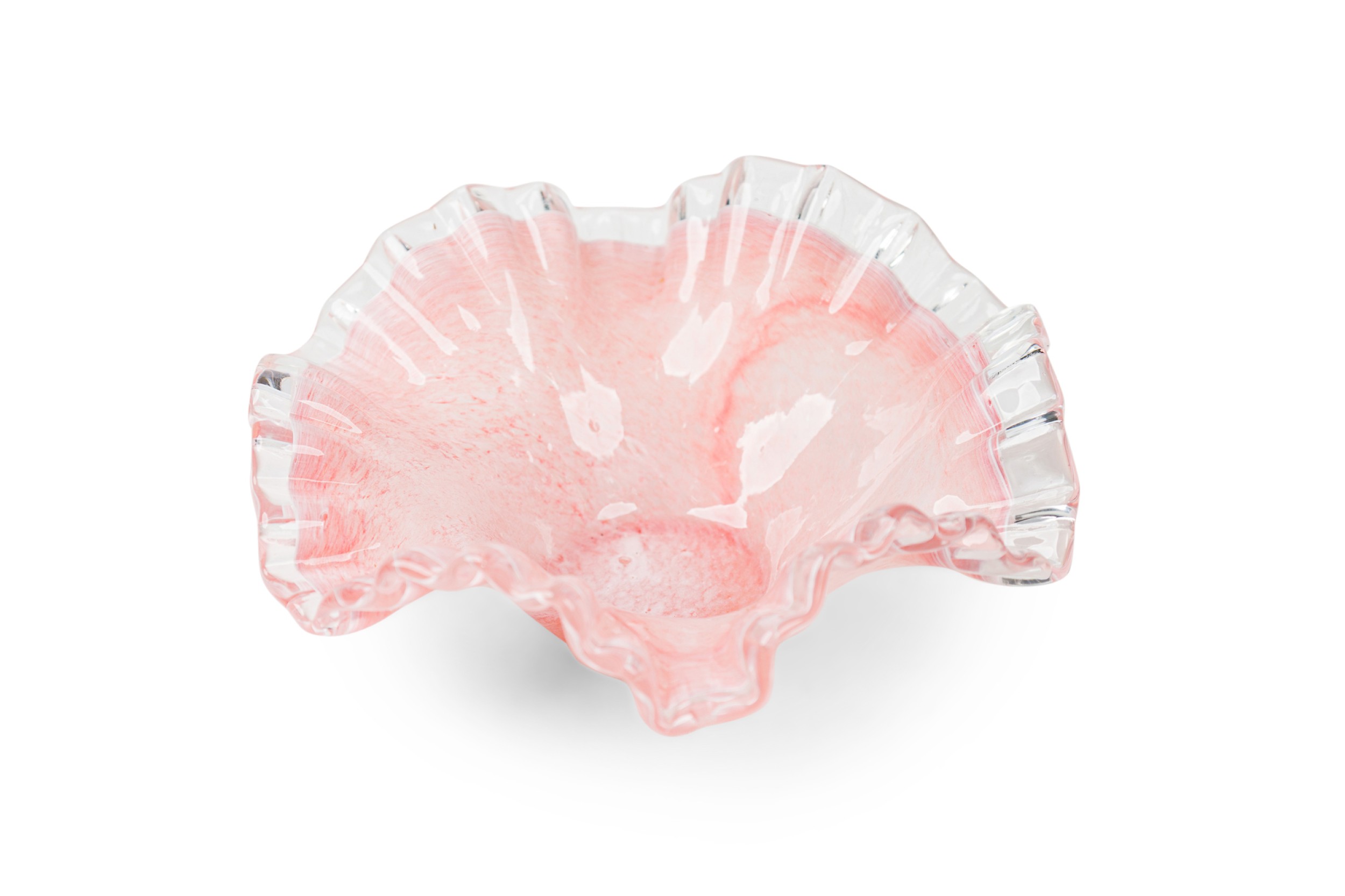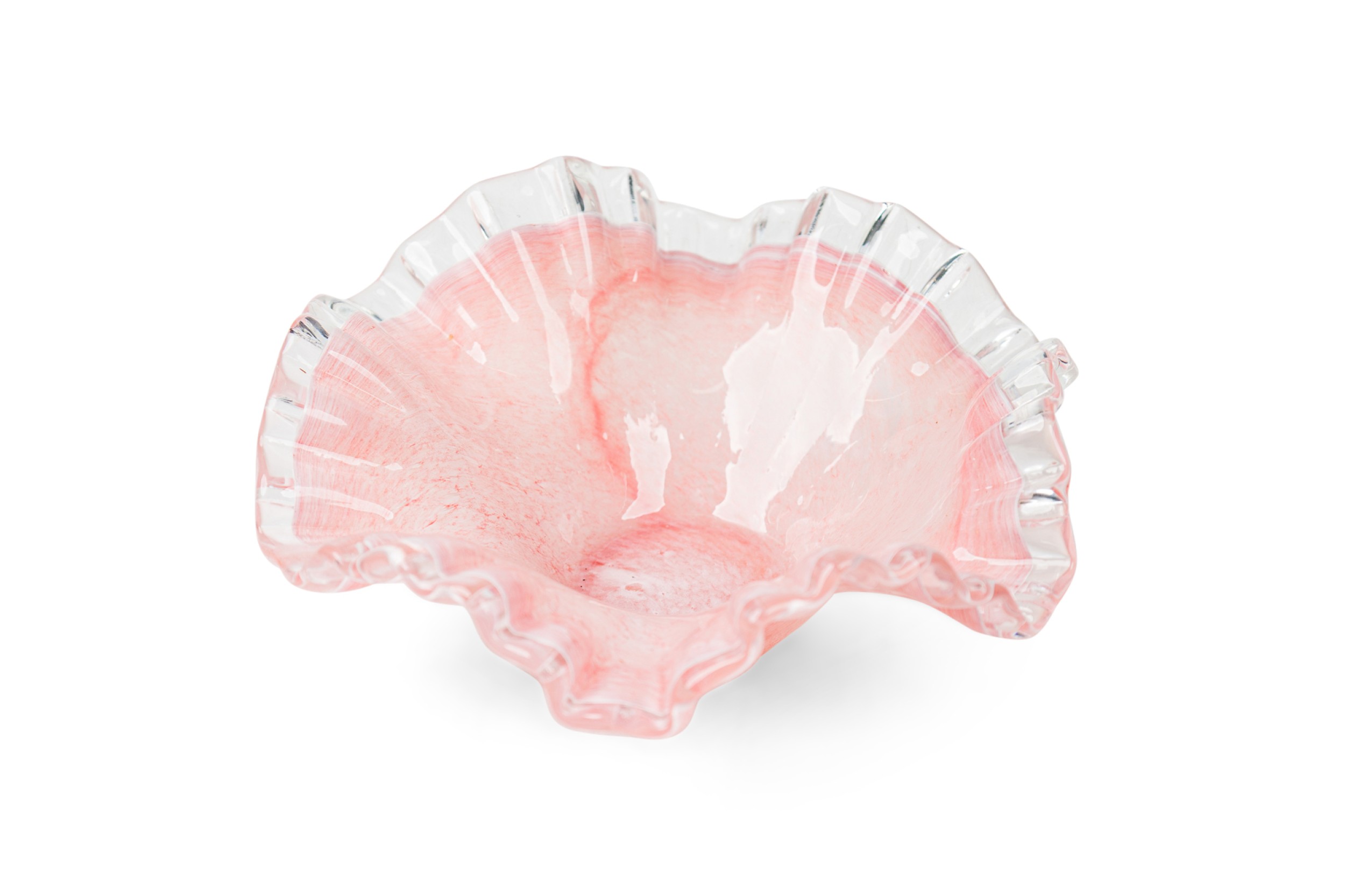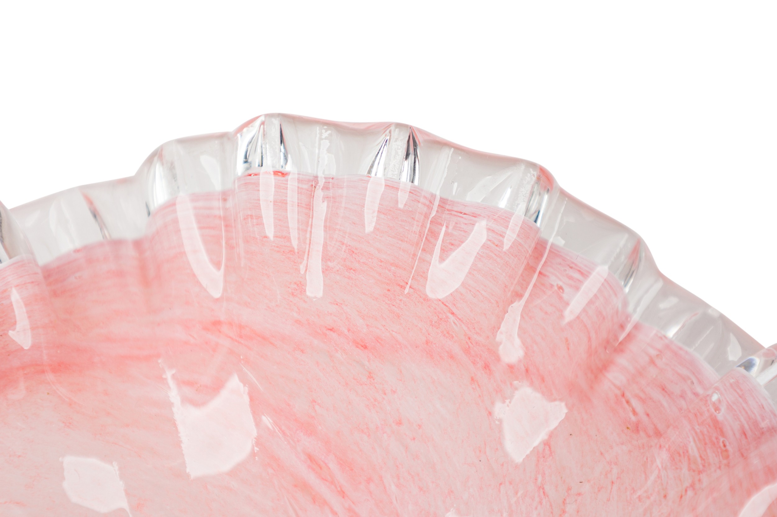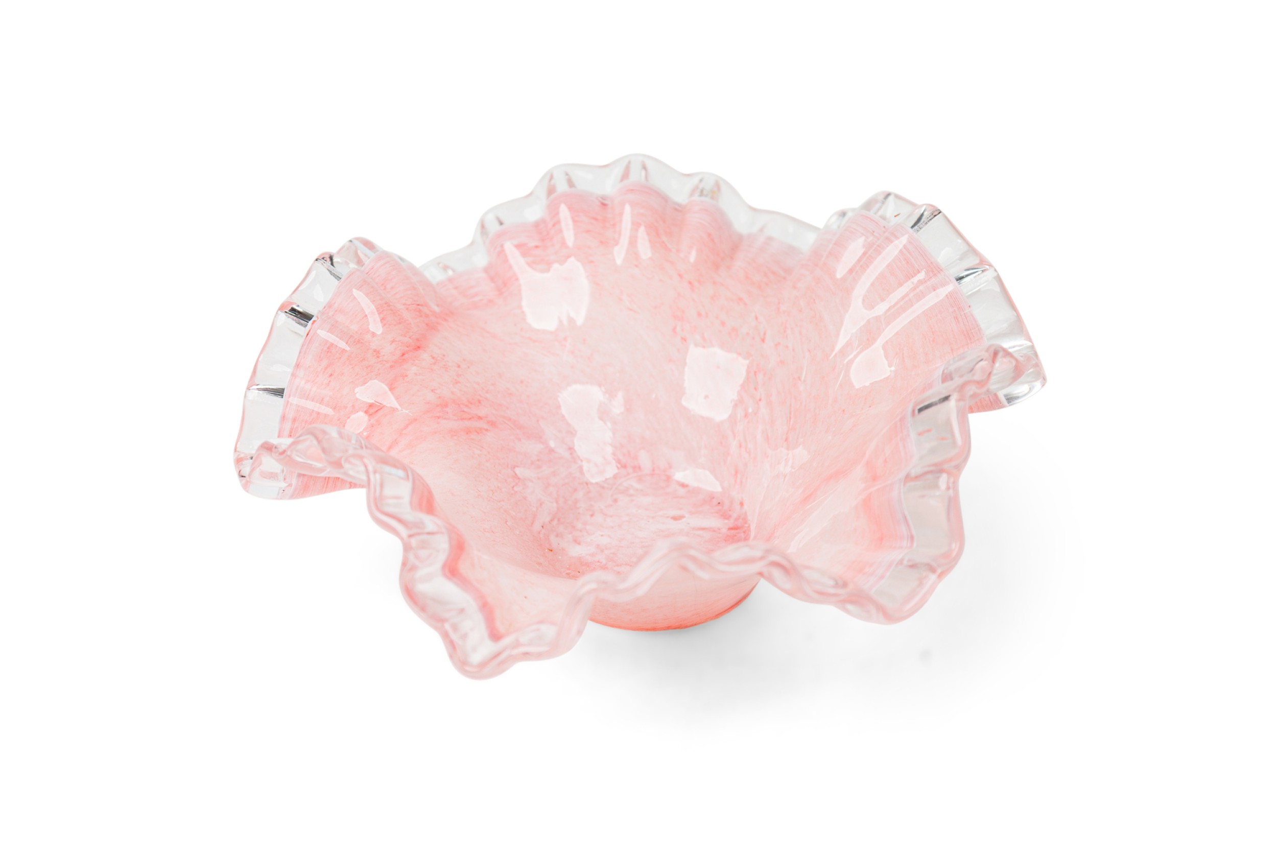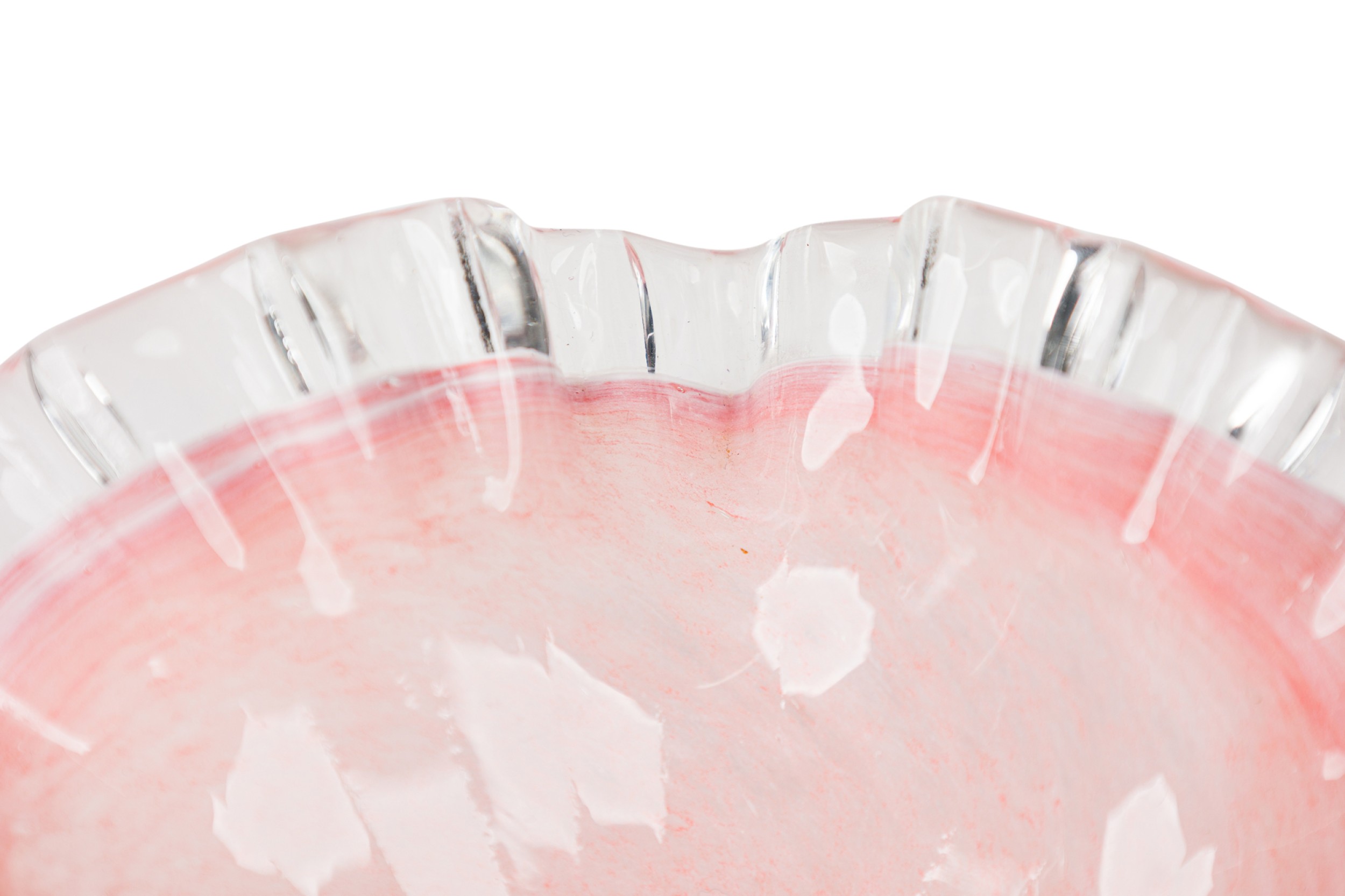 American Art Nouveau style scalloped pink glass bowl on a flush round base (FENTON).